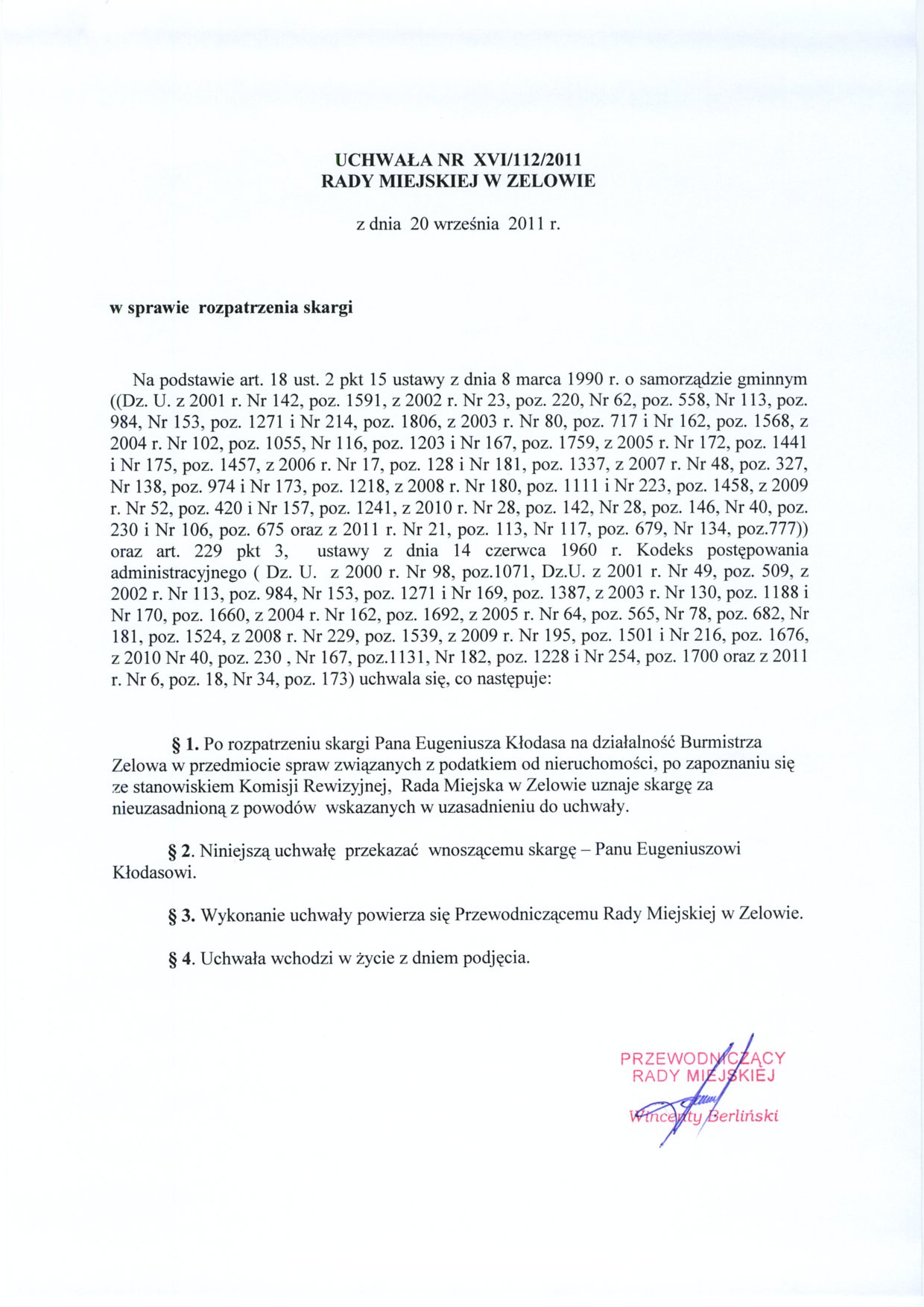 | Tytuł aktu prawnego - skrócony: | w sprawie rozpatrzenia skargi |
