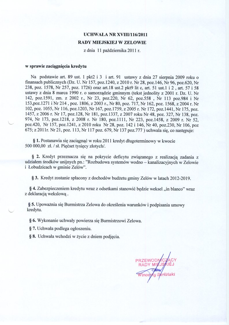 | Tytuł aktu prawnego - skrócony: | w sprawie zaciągnięcia kredytu |