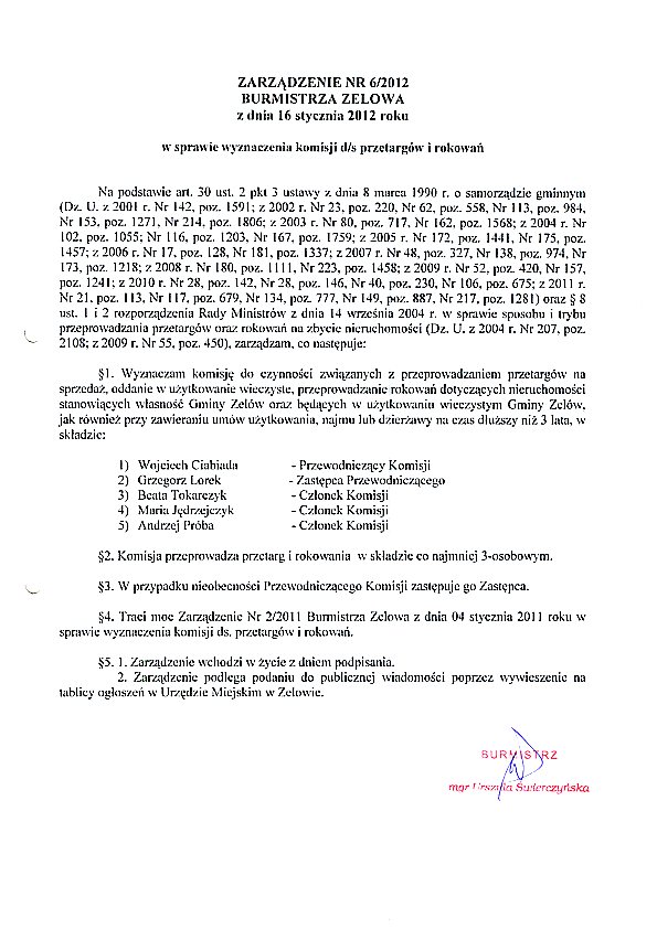 | Tytuł aktu prawnego - skrócony: | w sprawie wyznaczenia komisji d/s przetargów i rokowań |