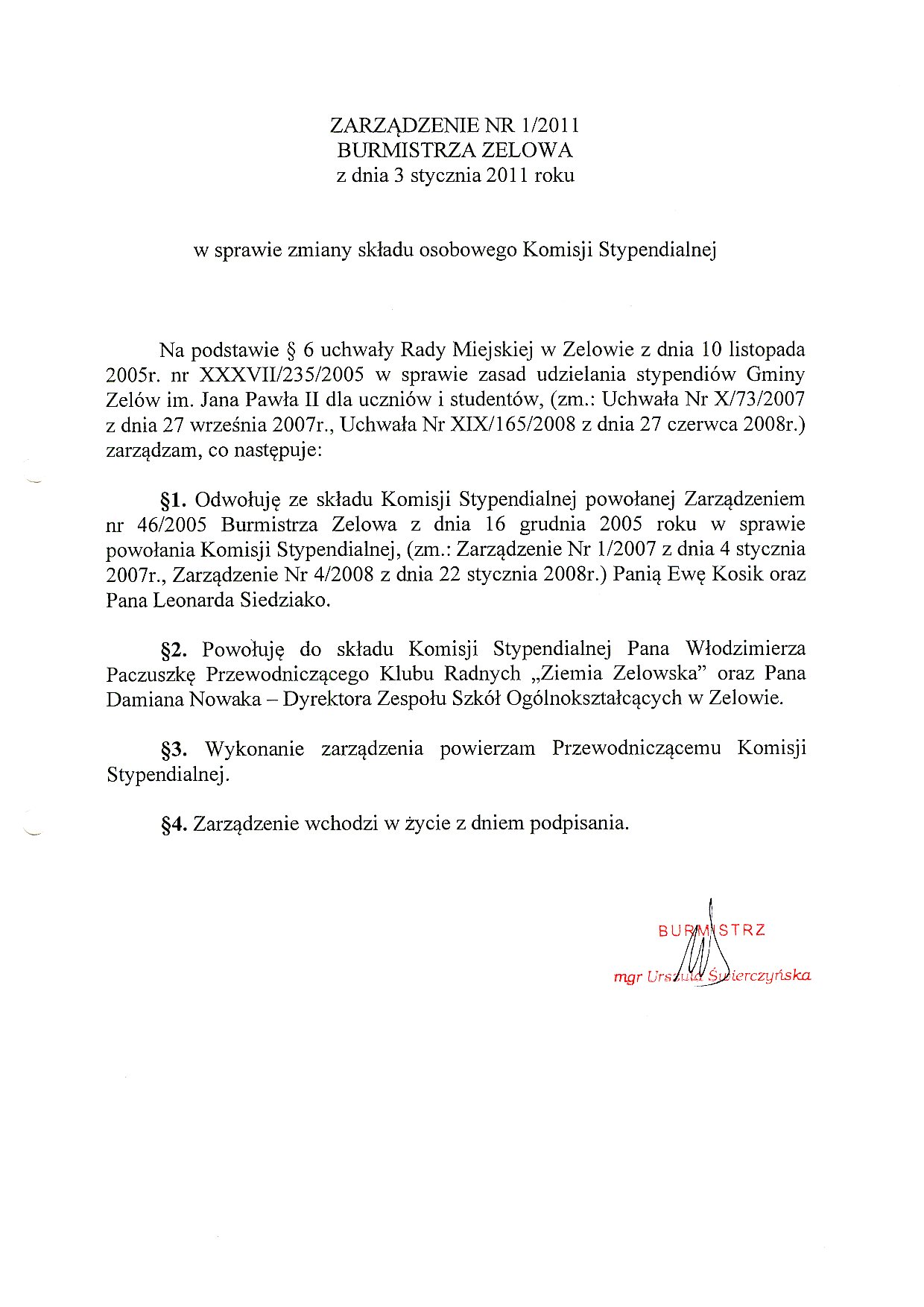 | Tytuł aktu prawnego - skrócony: | Zarządzenie w sprawie zmiany składu osobowego Komisji Stypendialnej |