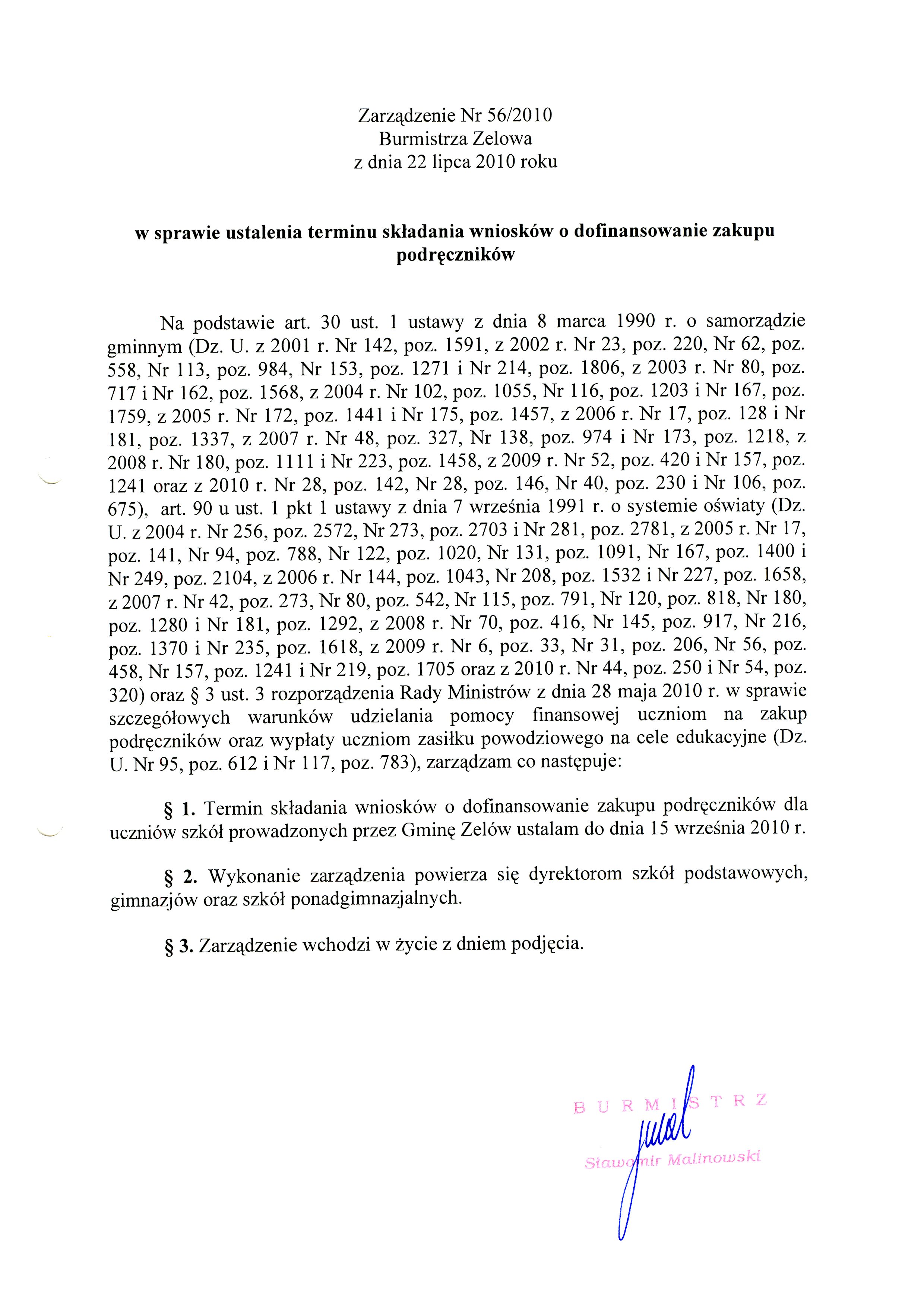 | Tytuł aktu prawnego - skrócony: | Zarządzenie w sprawie ustalenia terminu składania wniosków o dofinansowanie zakupu podręczników |