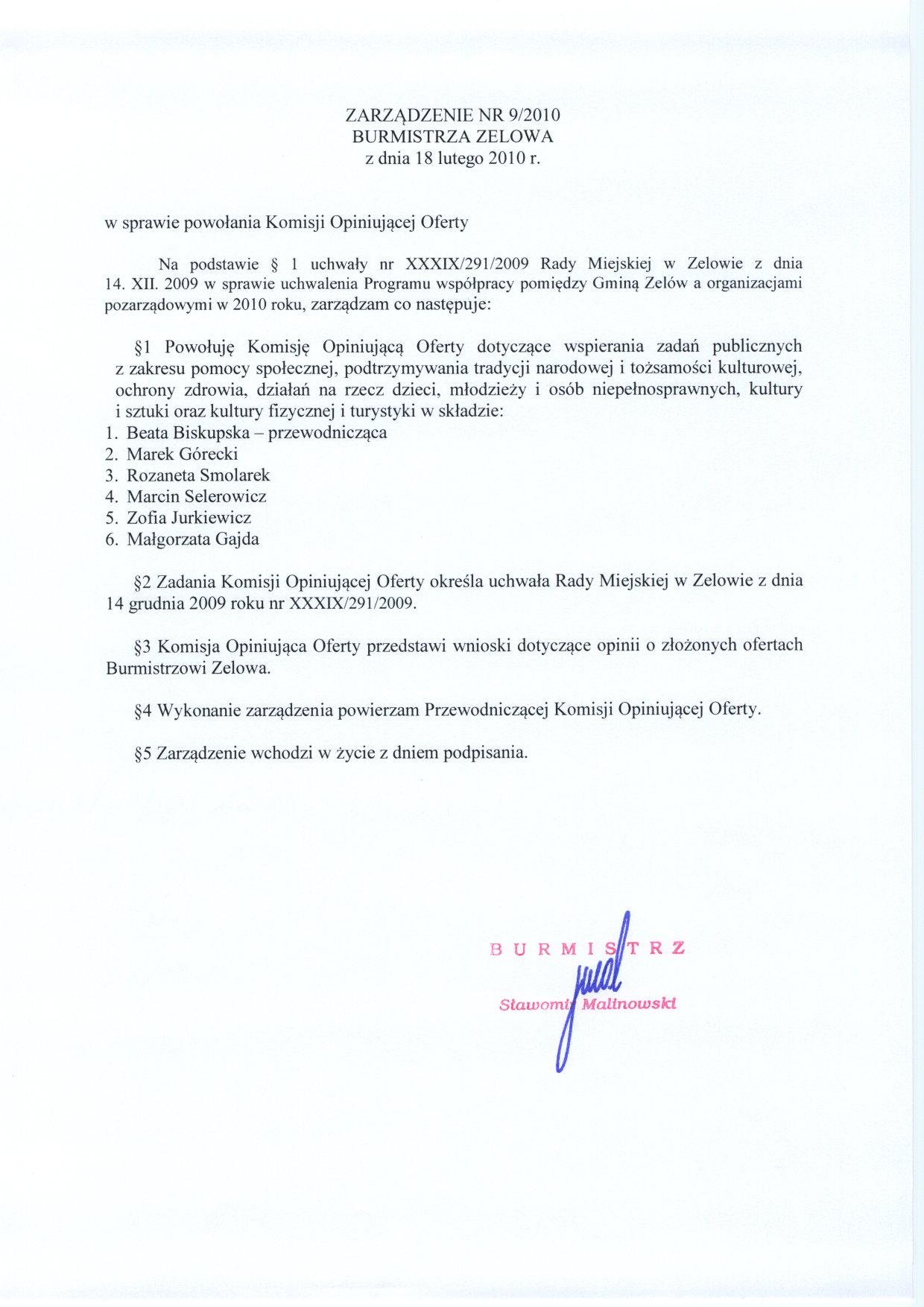 | Komórka organizacyjna: | Burmistrz Zelowa |