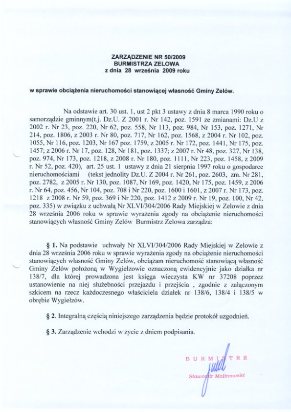 | Tytuł aktu prawnego - skrócony: | Zarządzenie w sprawie obciążenia nieruchomości stanowiącej własność Gminy Zelów |