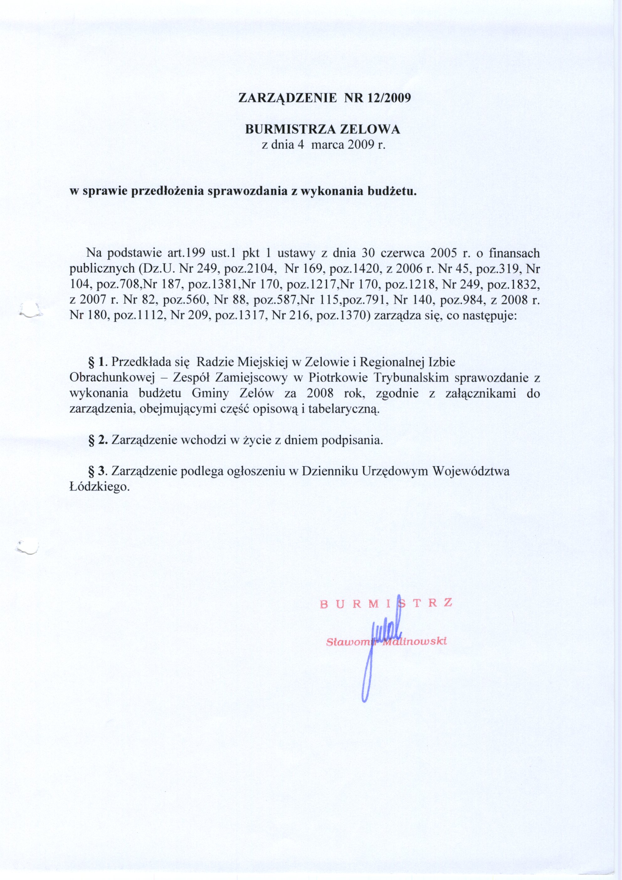| Tytuł aktu prawnego - skrócony: | Zarządzenie w sprawie przedłożenia sprawozdania z wykonania budżetu |