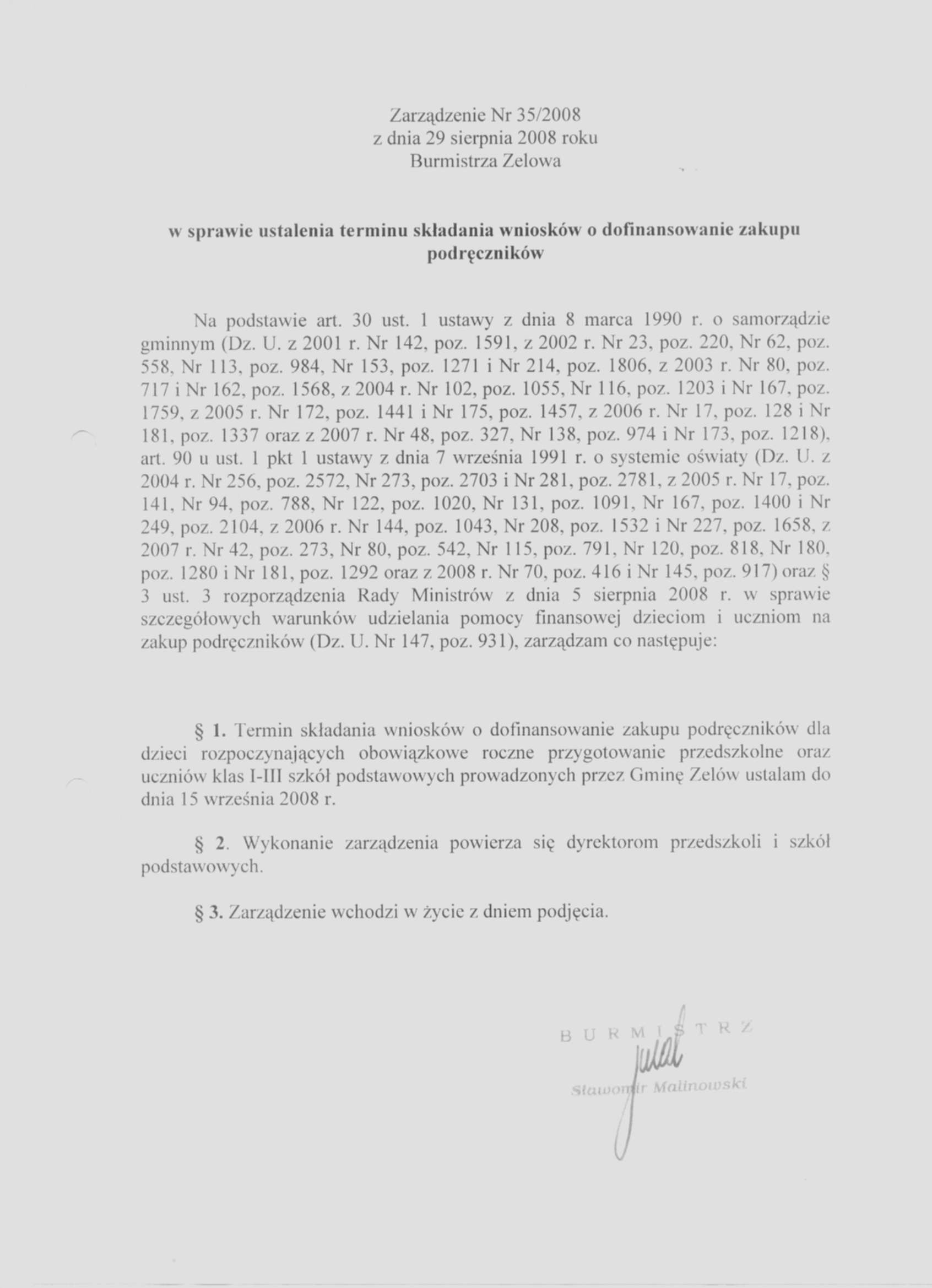 | Komórka organizacyjna: | Burmistrz Zelowa |