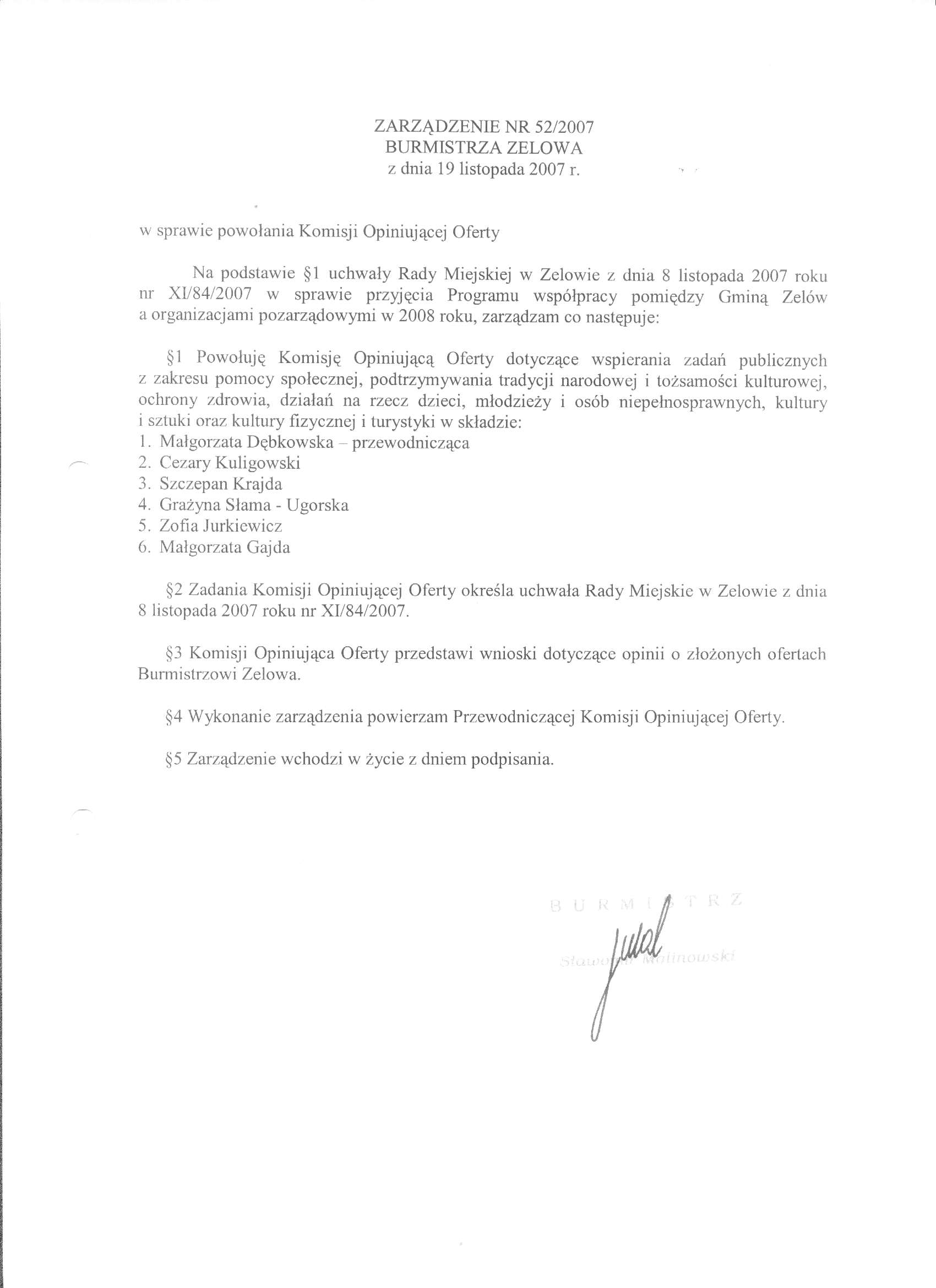 | Komórka organizacyjna: | Burmistrz Zelowa |