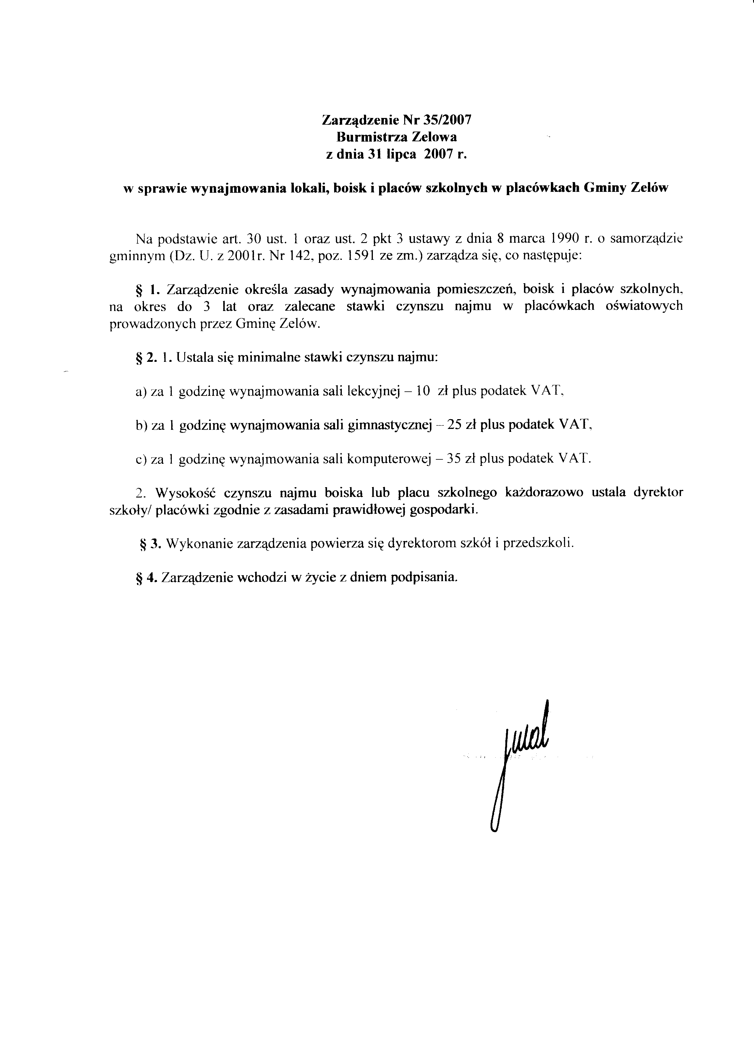 | Tytuł aktu prawnego - skrócony: | Zarządzenie w sprawie wynajmowania lokali, boisk i placów szkolnych w placówkach Gminy Zelów |