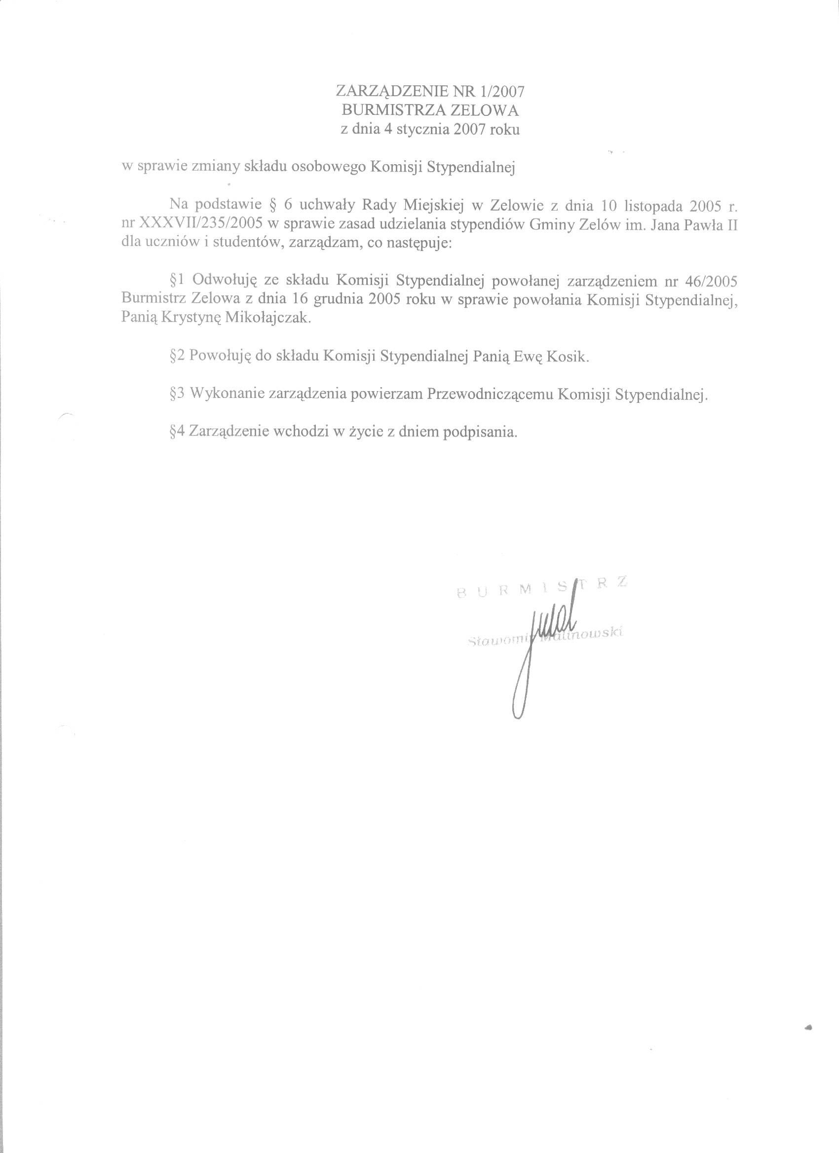 | Tytuł aktu prawnego - skrócony: | Zarządzenie w sprawie zmiany składu osobowego Komisji Stypendialnej. |
