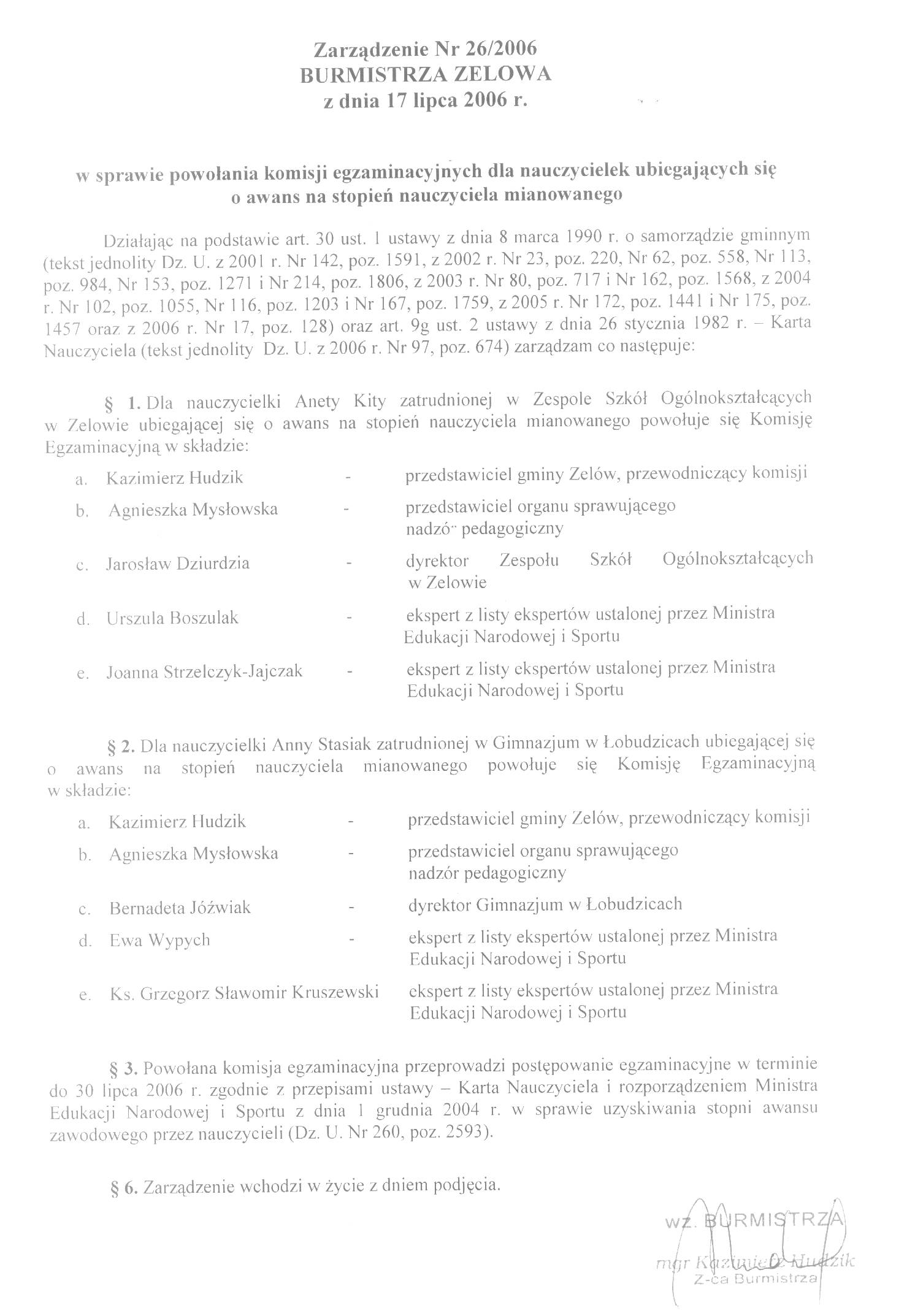 | Tytuł aktu prawnego - skrócony: | Zarządzenie w sprawie powołania komisji egzaminacyjnej dla nauczycieli ubiegających się o awans na stopień nauczyciela mianowanego |