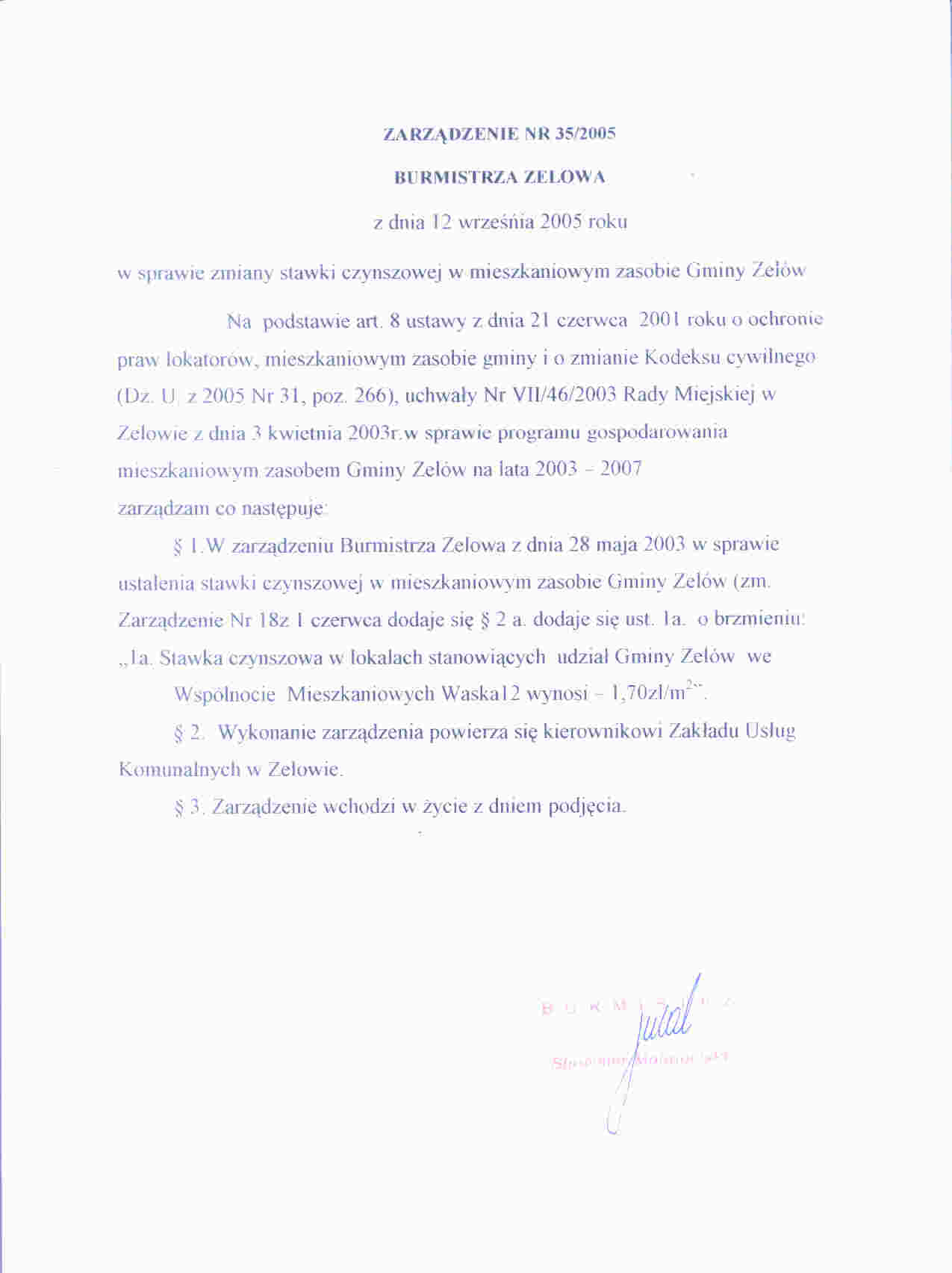 | Tytuł aktu prawnego - skrócony: | Zarządzenie w sprawie zmiany stawki czynszowej w mieszkaniowym zasobie Gminy Zelów. |