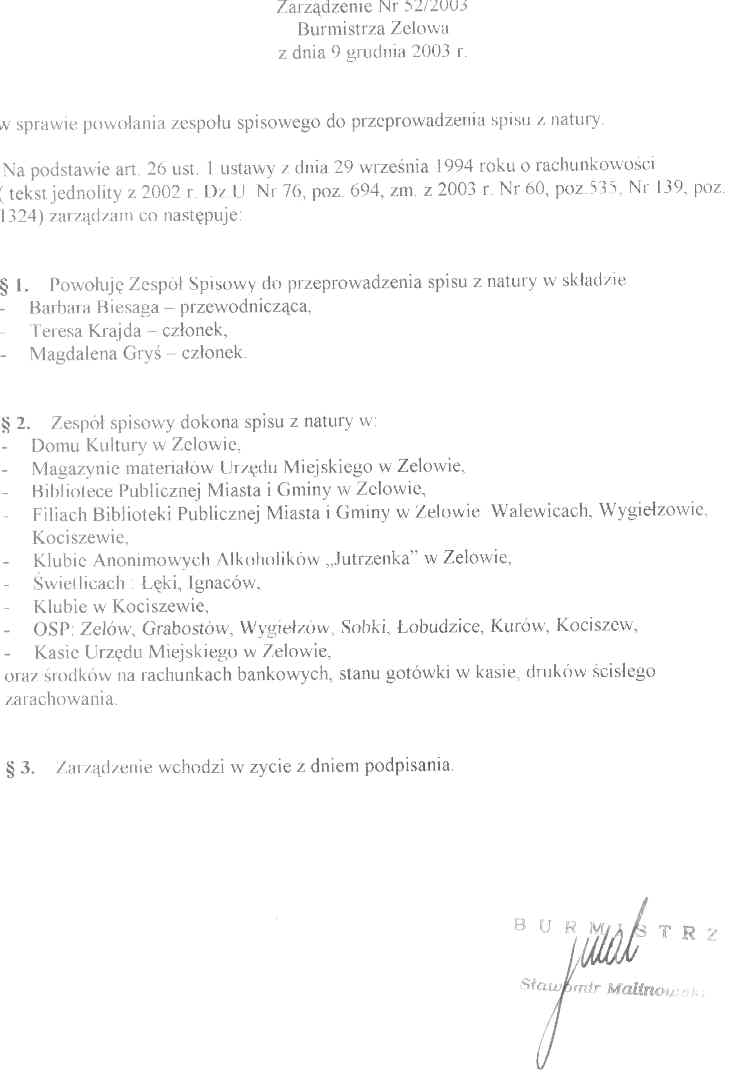 | Tytuł aktu prawnego - skrócony: | Zarządzenie w sprawie powołania zespołu spisowego do przeprowadzenia spisu z natury. |