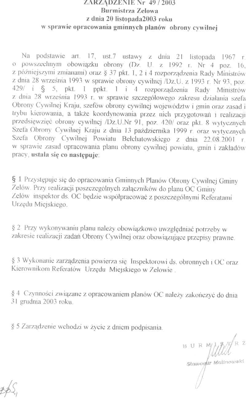 | Tytuł aktu prawnego - skrócony: | Zarządzenie w sprawie opracowania gminnych planów obrony cywilnej. |