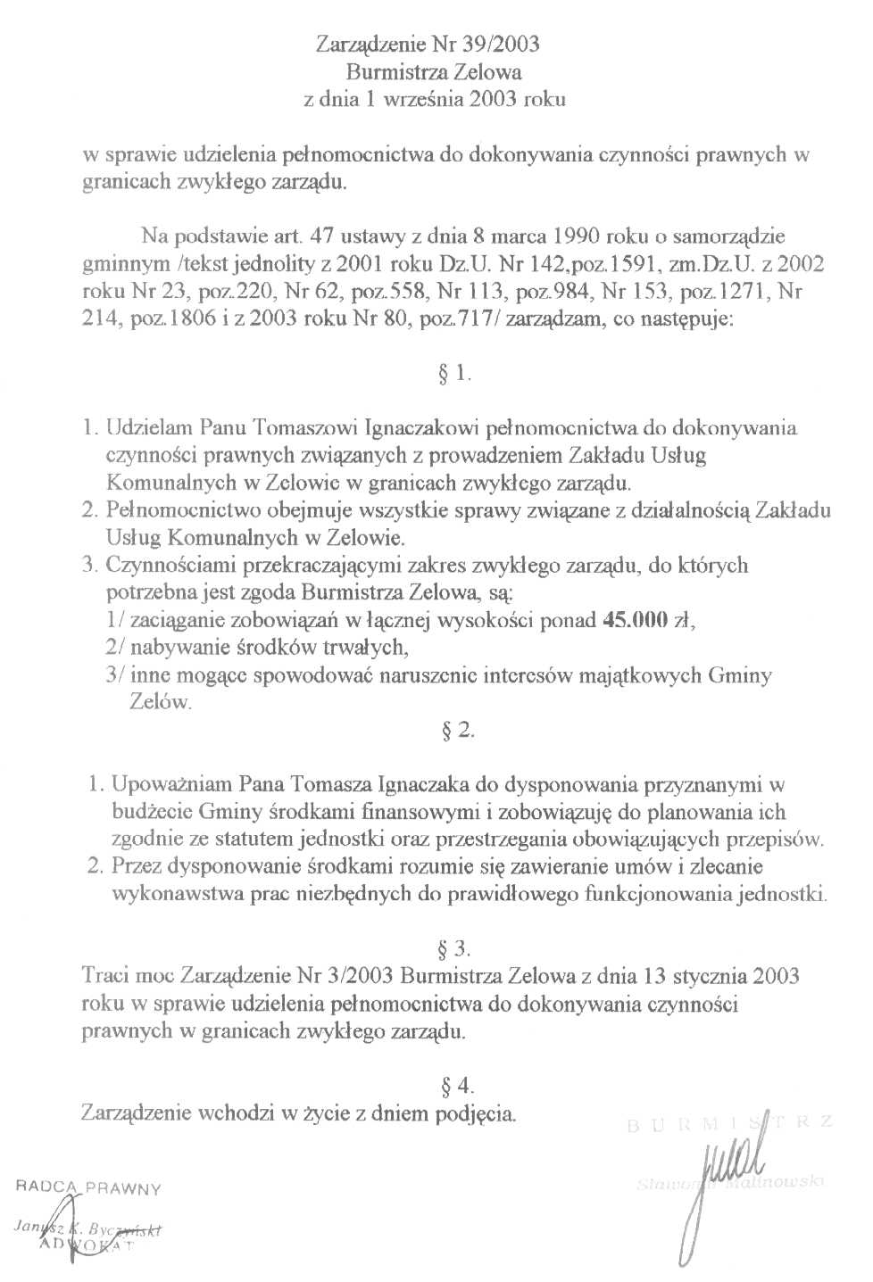 | Komórka organizacyjna: | Burmistrz Zelowa |