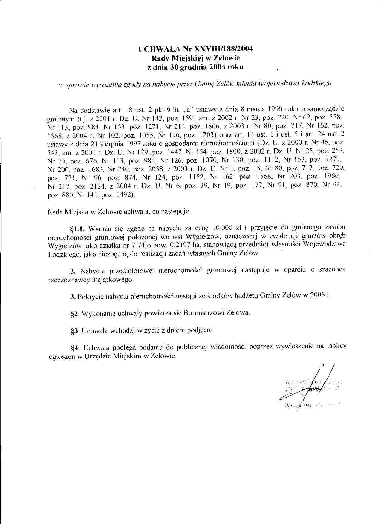 | Tytuł aktu prawnego - skrócony: | Uchwała w sprawie wyrażenia zgody na nabycie przez Gminę Zelów mienia Województwa Łódzkiego( dot. działki nr 71/4). |