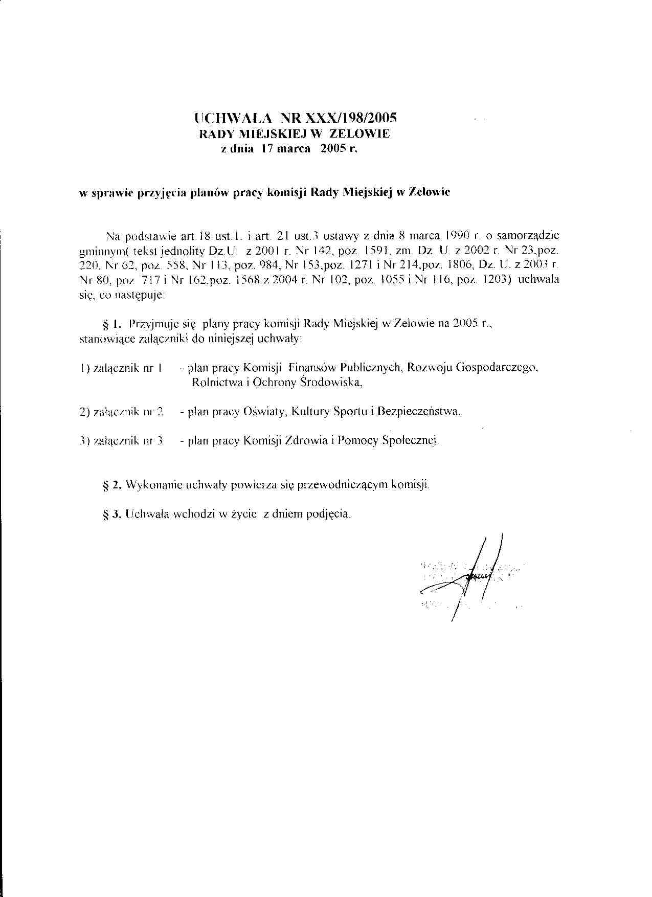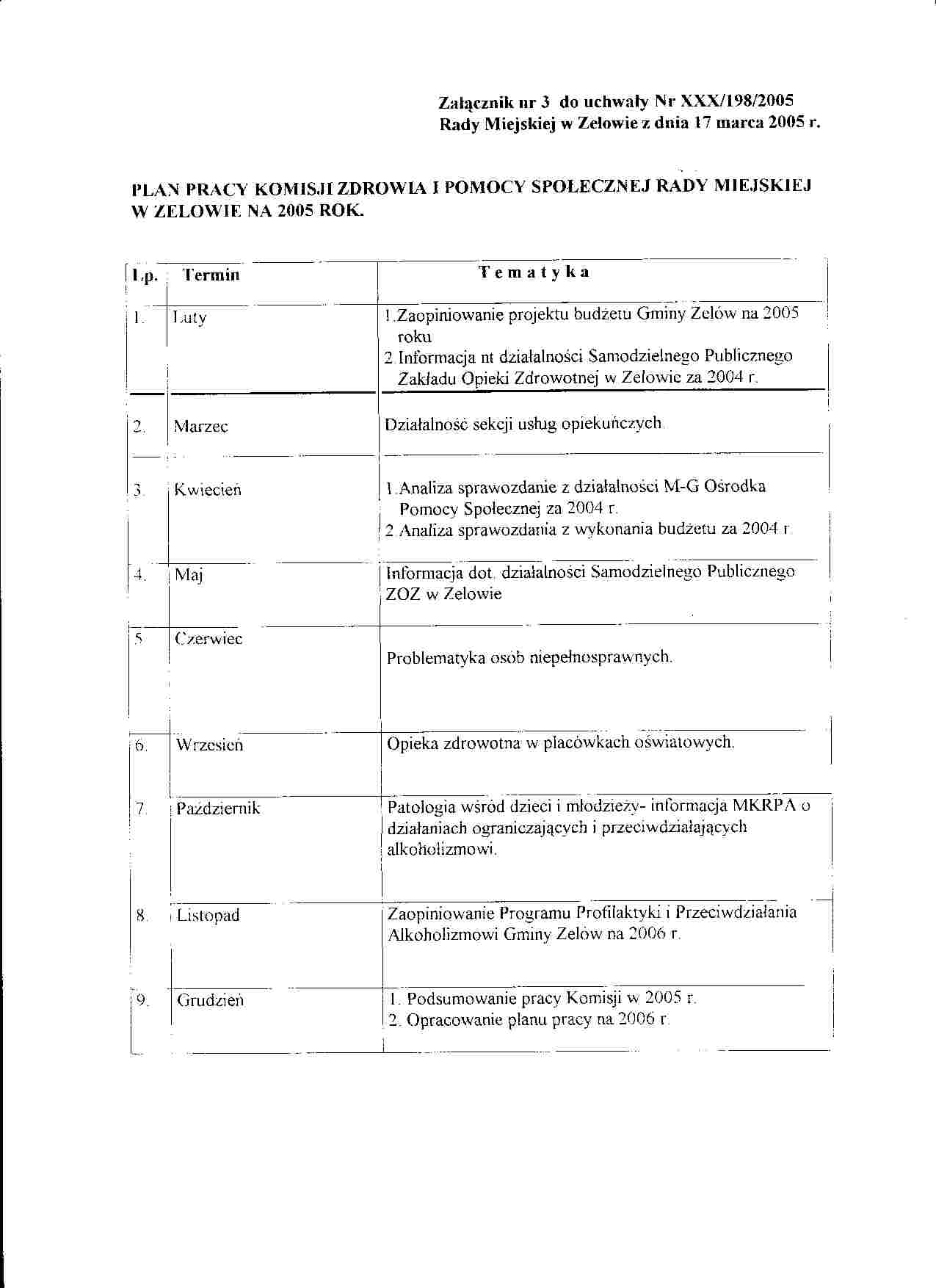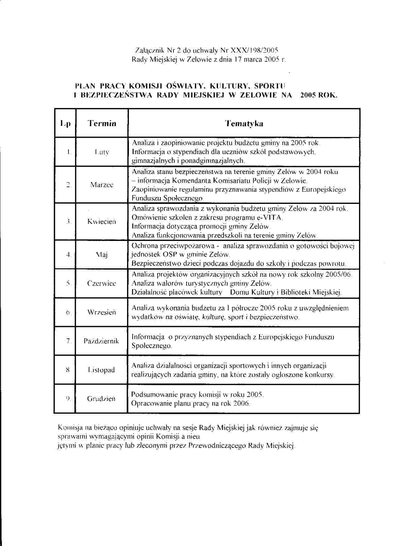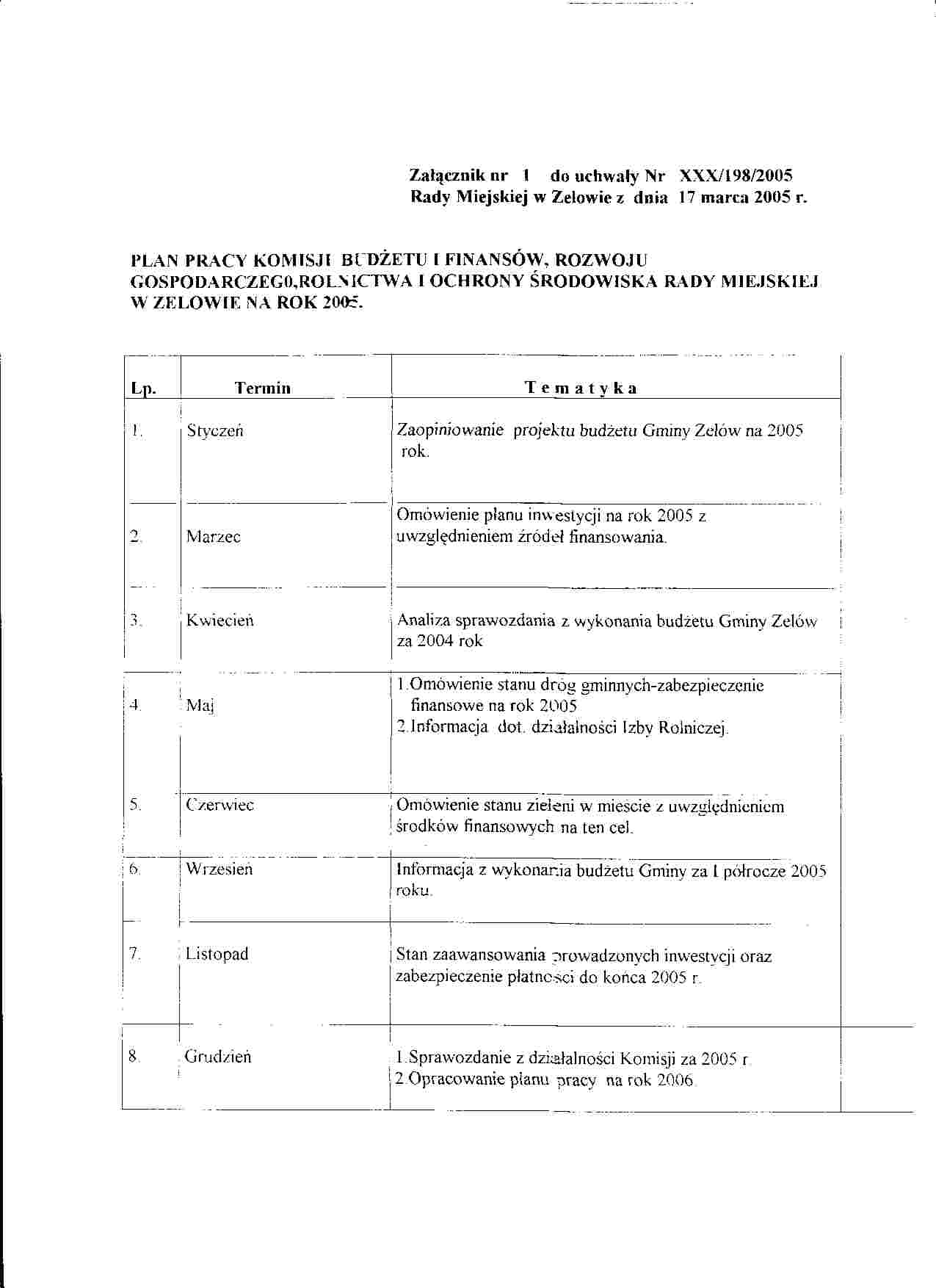 | Tytuł aktu prawnego - skrócony: | Uchwała w sprawie przyjęcia planów pracy Komisji Rady Miejskiej w Zelowie |
