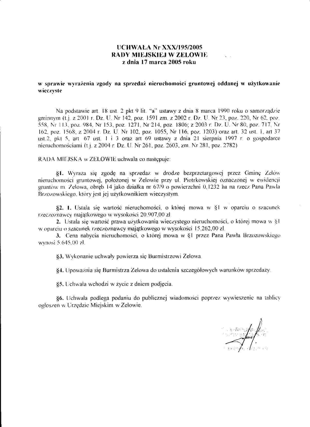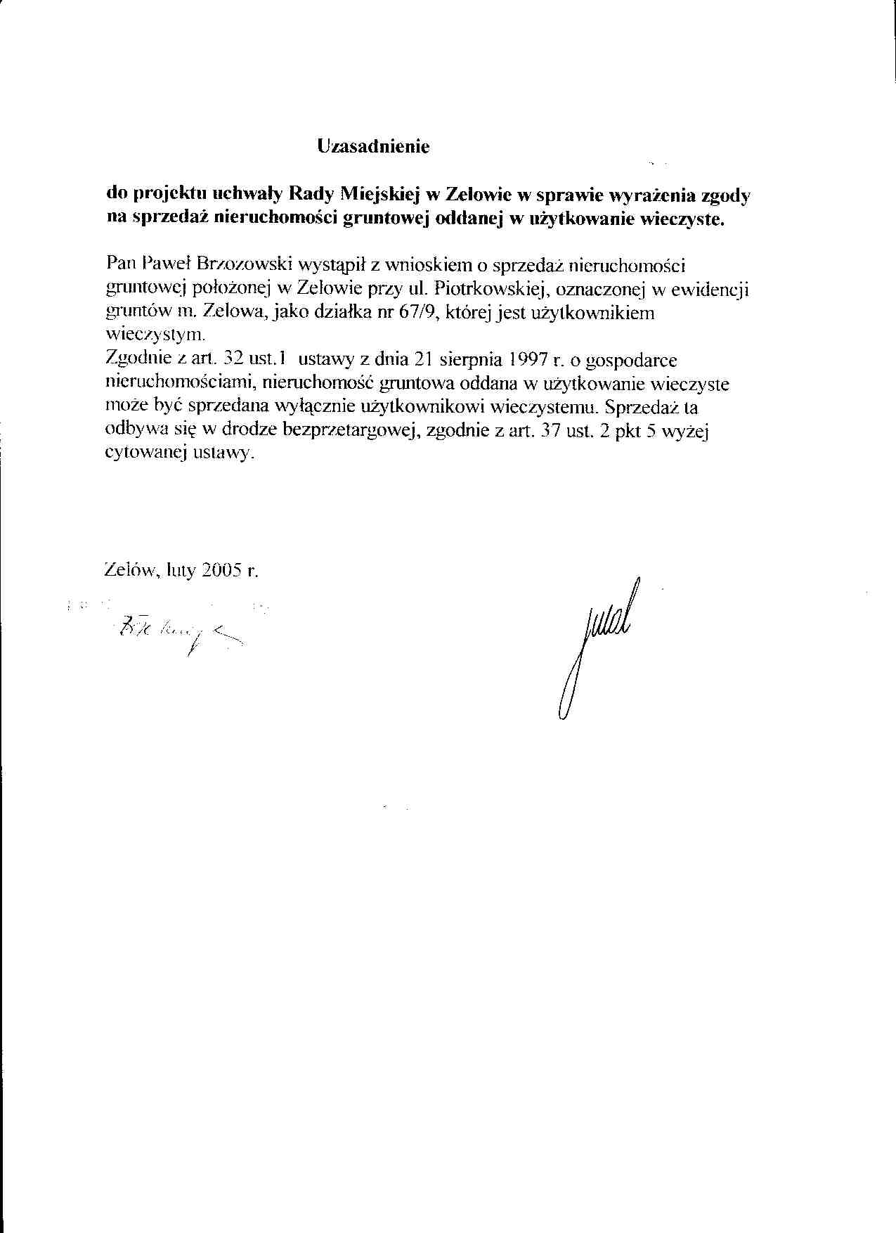 | Tytuł aktu prawnego - skrócony: | Uchwała w sprawie wyrażenia zgody na sprzedaż nieruchomości gruntowej oddanej w użytkowanie wieczyste |