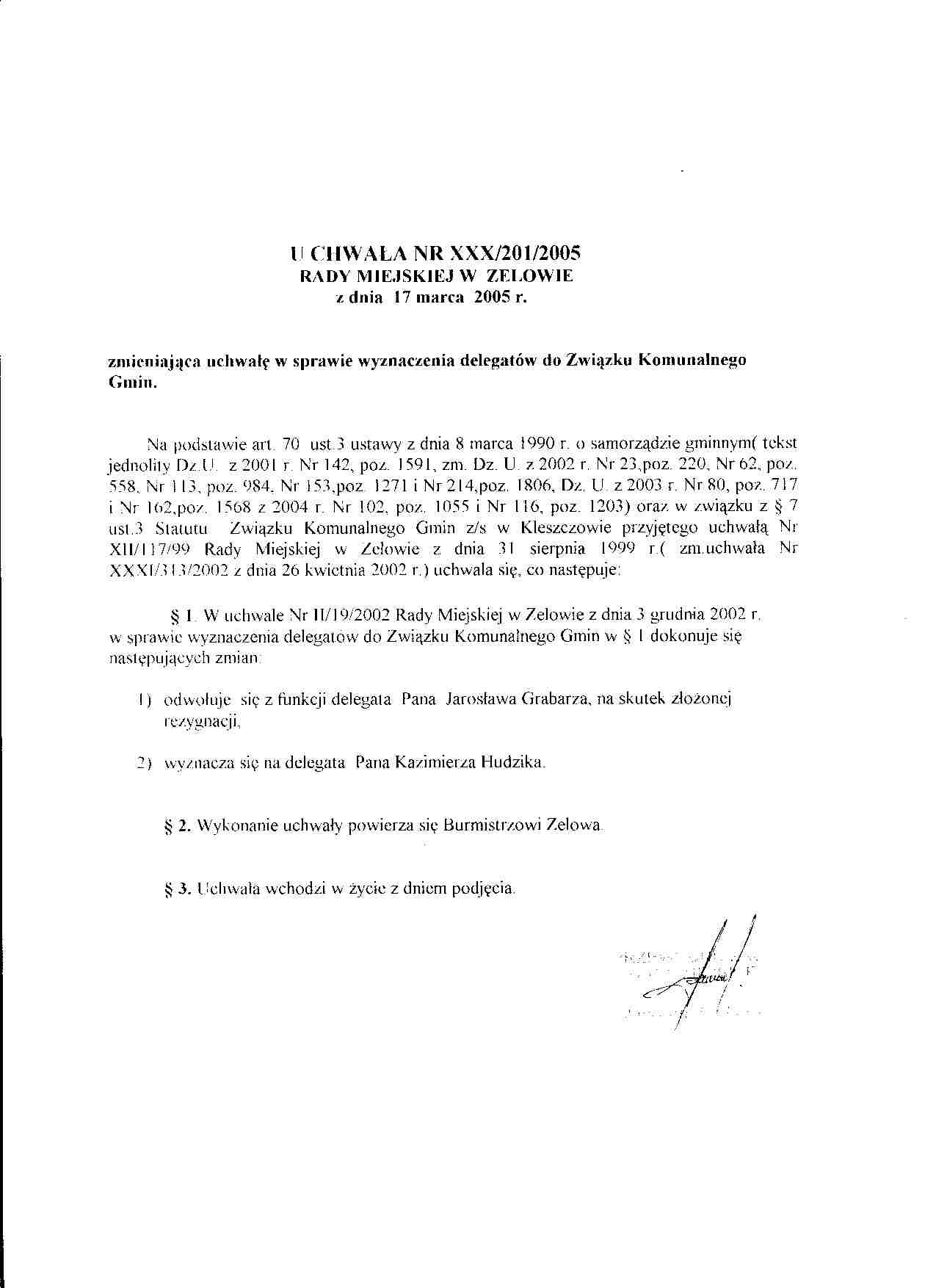 | Tytuł aktu prawnego - skrócony: | Uchwała w sprawie wyznaczenia delegatów do Związku Komunalnego Gmin |