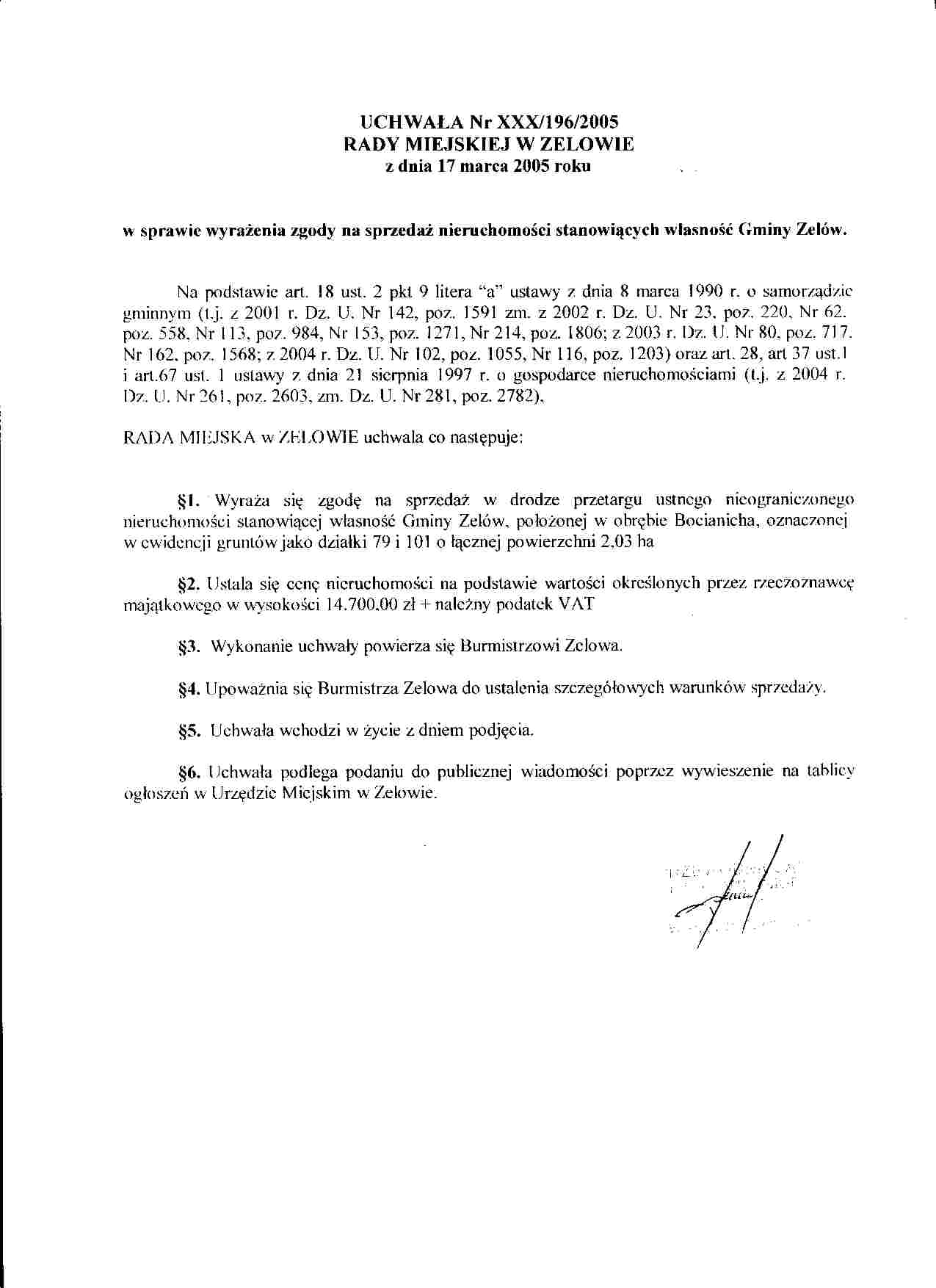 | Tytuł aktu prawnego - skrócony: | Uchwała w sprawie wyrażenia zgody na sprzedaż nieruchomości stanowiących własność Gminy Zelów |