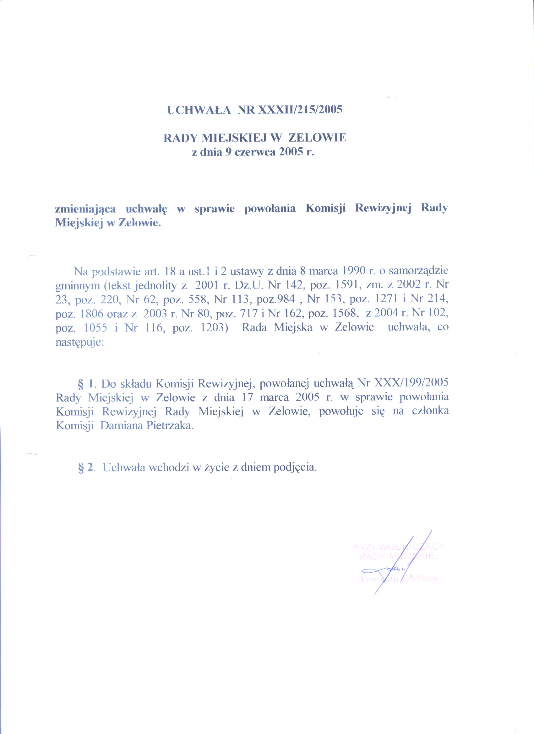 | Numer: | XXXII/215/2005 |