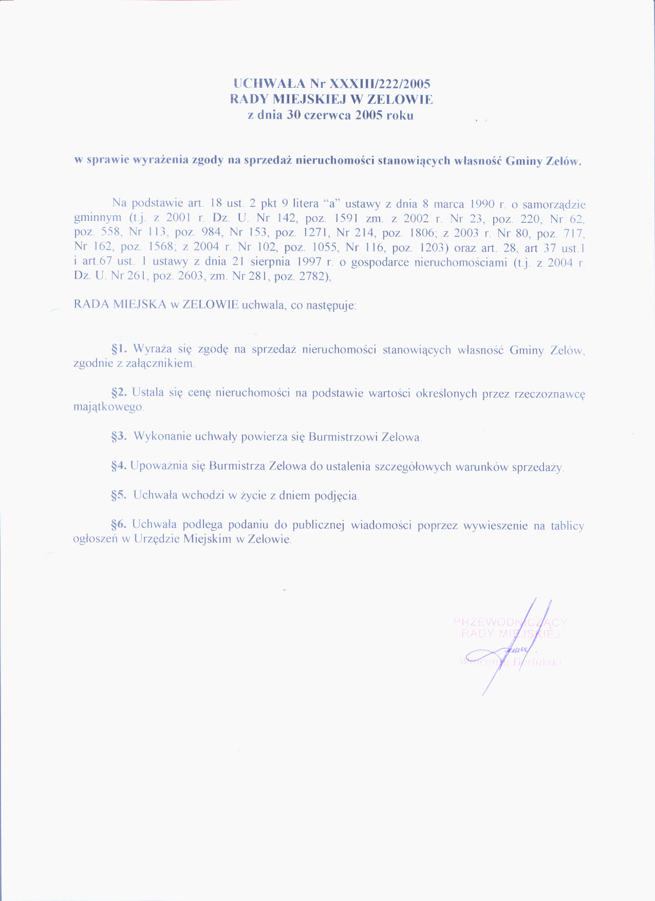 | Tytuł aktu prawnego - skrócony: | Uchwała w sprawie zgody na sprzedaż nieruchomości stanowiącej własność Gminy Zelów |