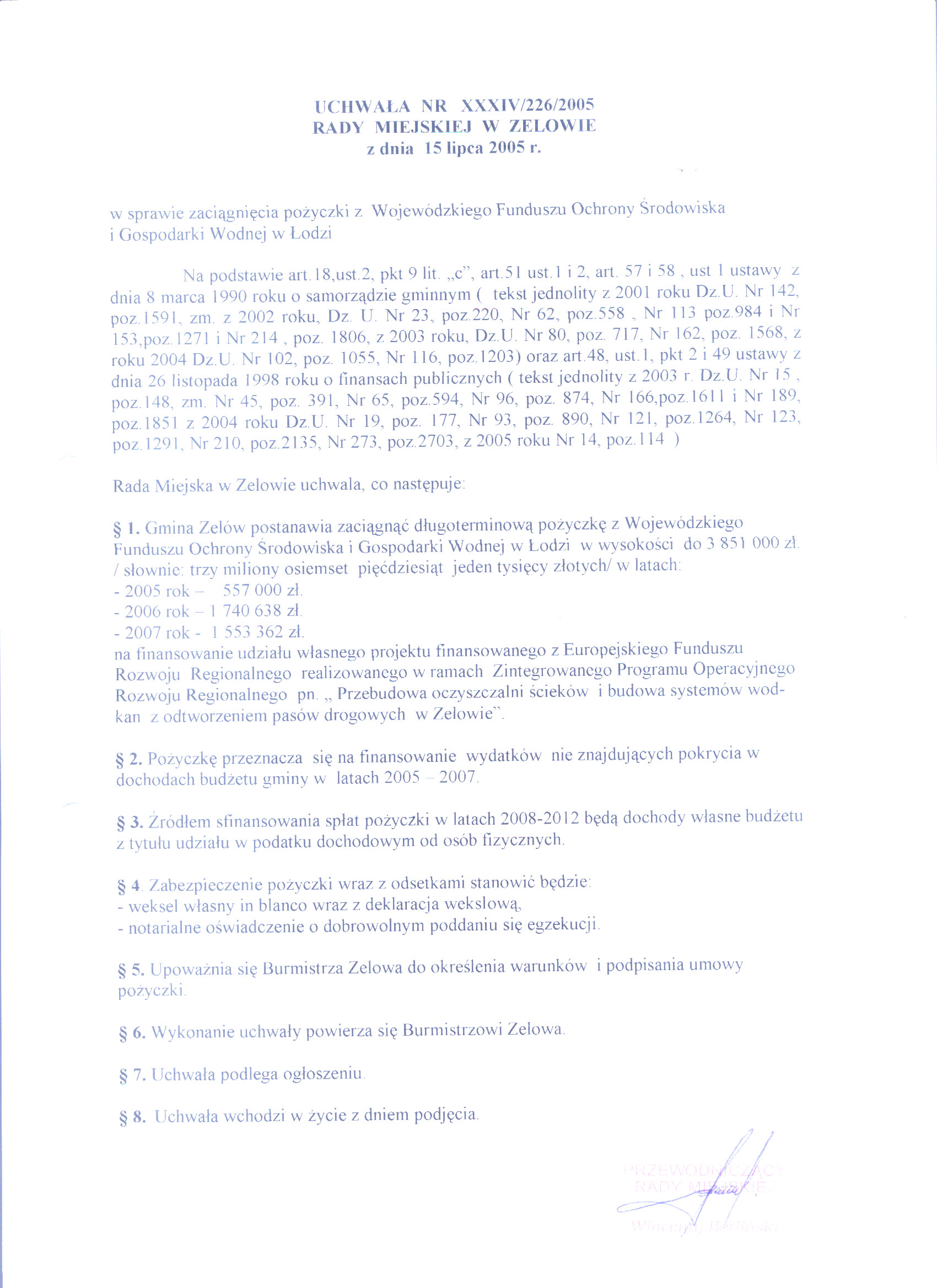| Tytuł aktu prawnego - skrócony: | Uchwała w sprawie zaciągnięcia pożyczki w WFOŚiGW w Łodzi |
