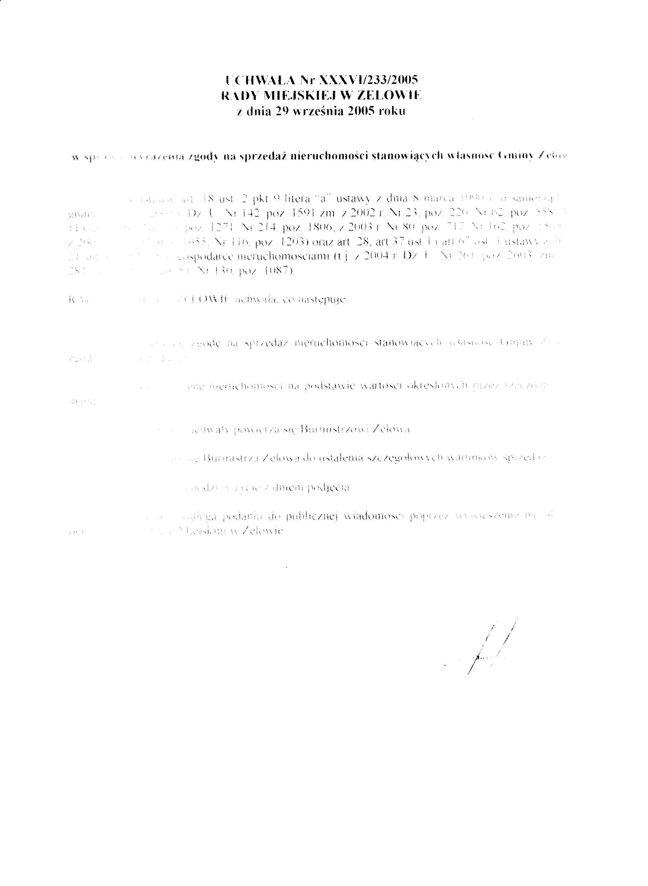 | Tytuł aktu prawnego - skrócony: | Uchwała w sprawie wyrażenia zgody na sprzedaż nieruchomości stanowiących własność Gminy Zelów. |