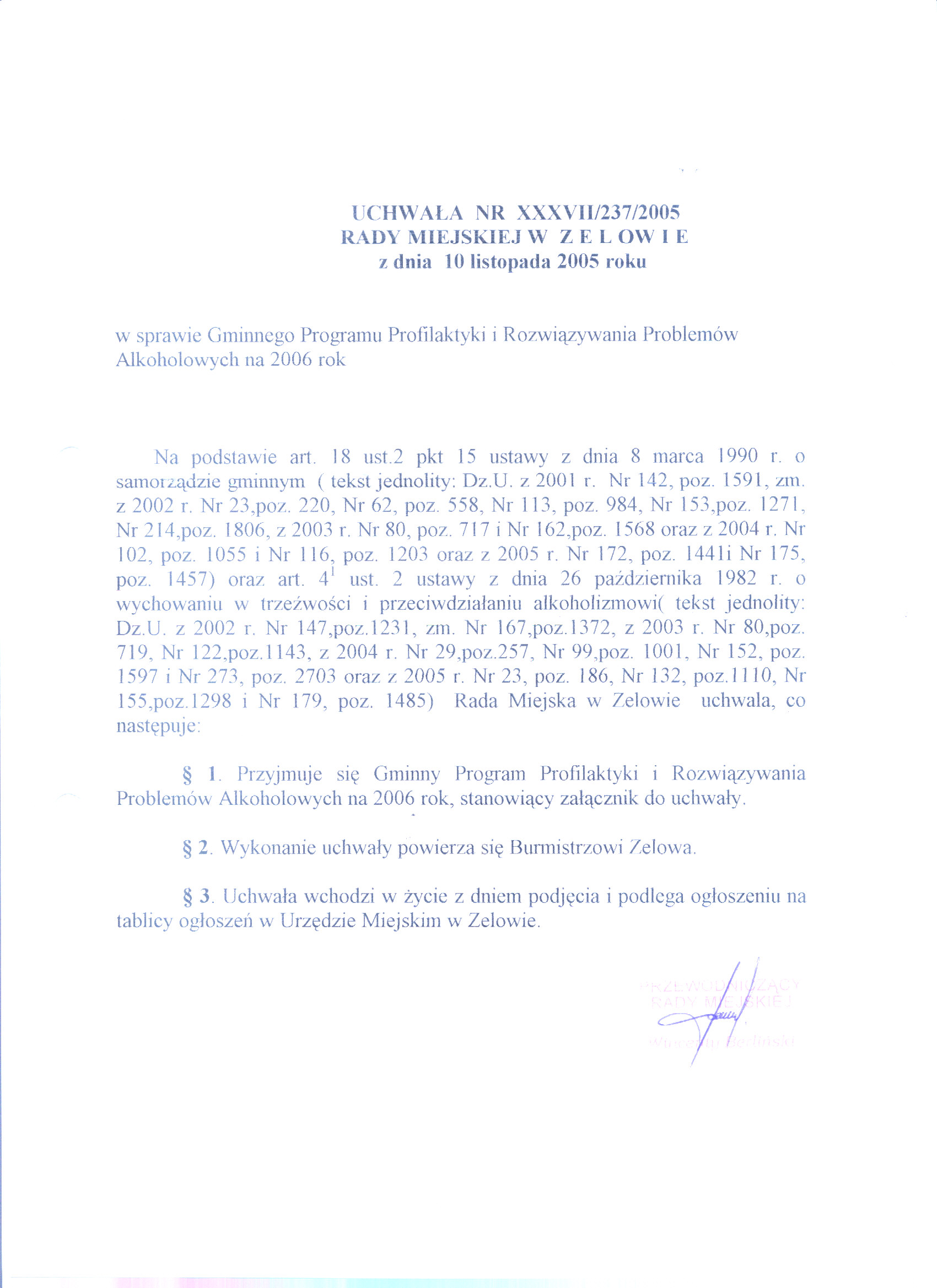 | Tytuł aktu prawnego - skrócony: | Uchwała w sprawie Gminnego Programu Profilaktyki i Rozwiązywania Problemów Alkoholowych na 2006 r. |