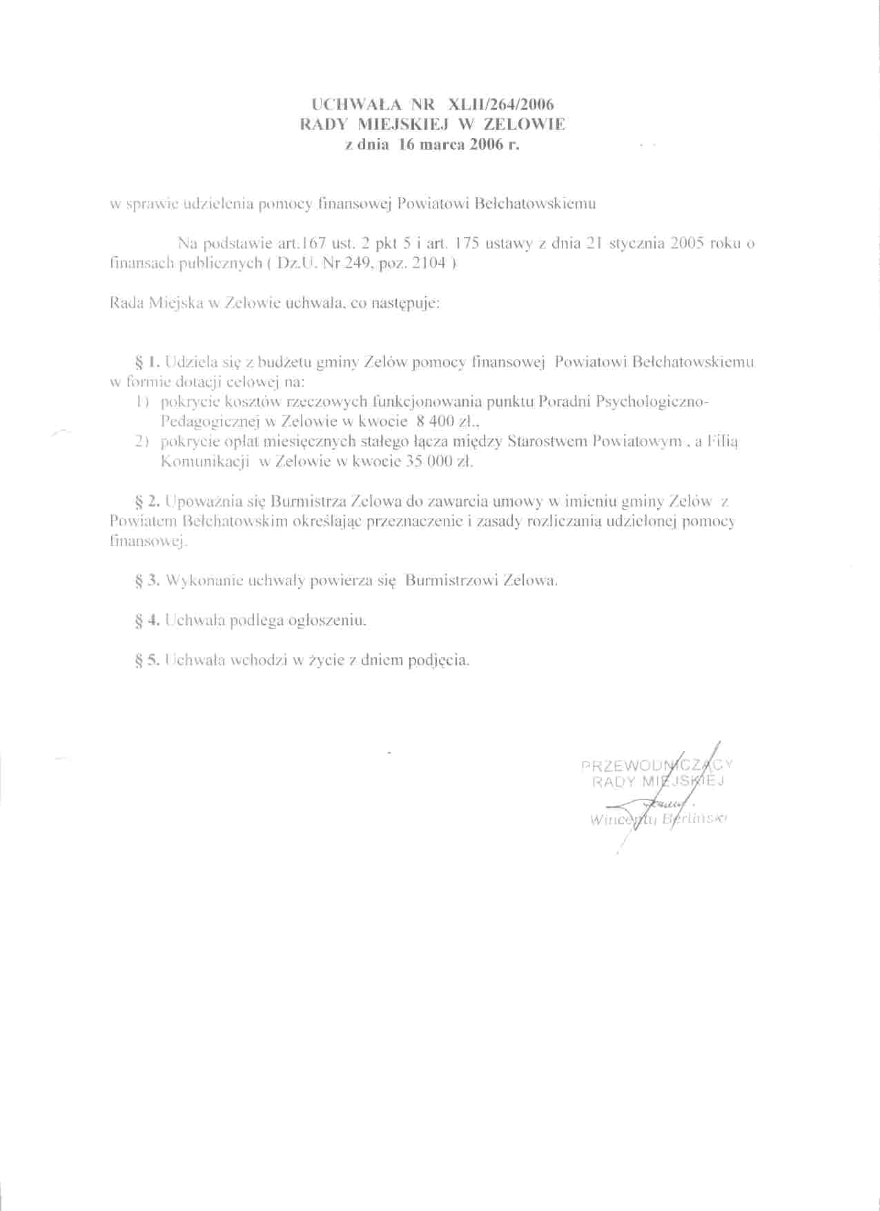 | Tytuł aktu prawnego - skrócony: | Uchwała w sprawie udzielenia pomocy finansowej Powiatowi Bełchatowskiemu. |
