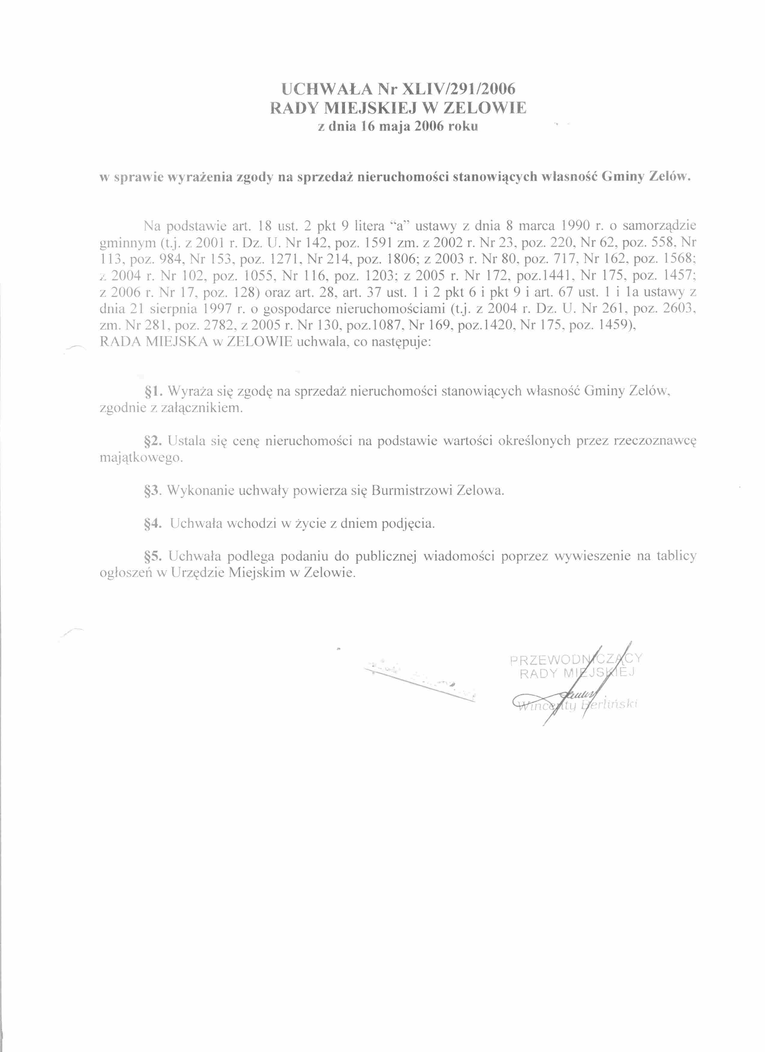 | Tytuł aktu prawnego - skrócony: | Uchwała w sprawie wyrażenia zgody na sprzedaż nieruchomości stanowiących własność Gminy Zelów |
