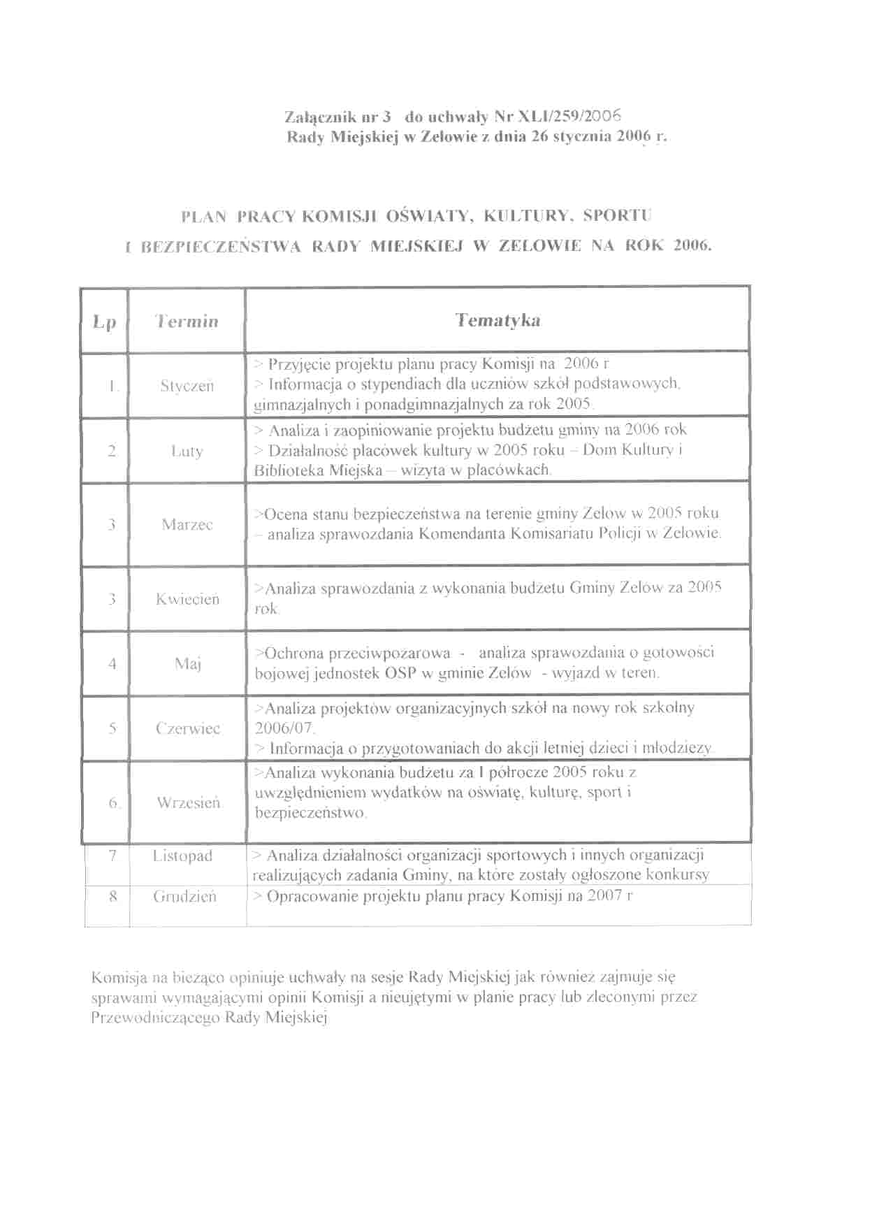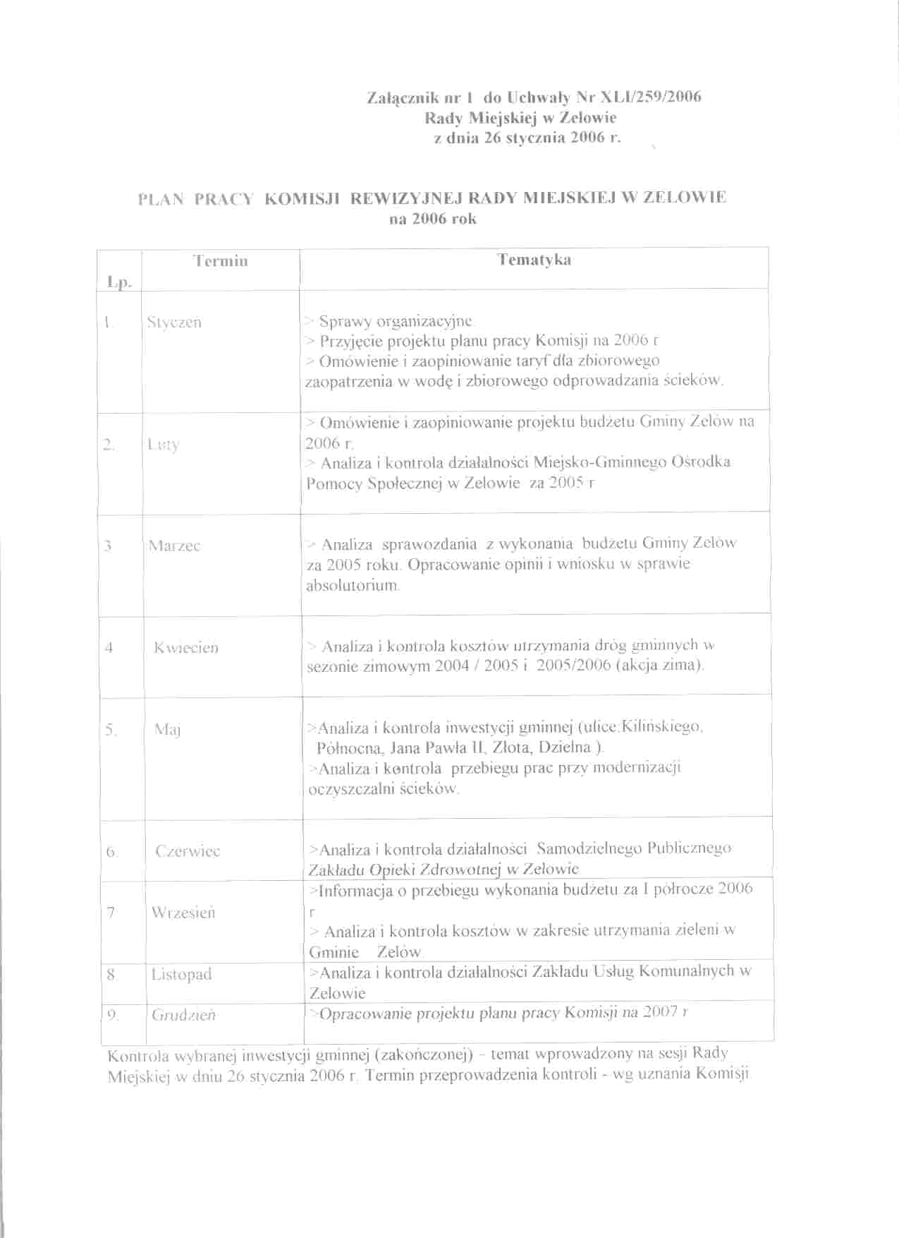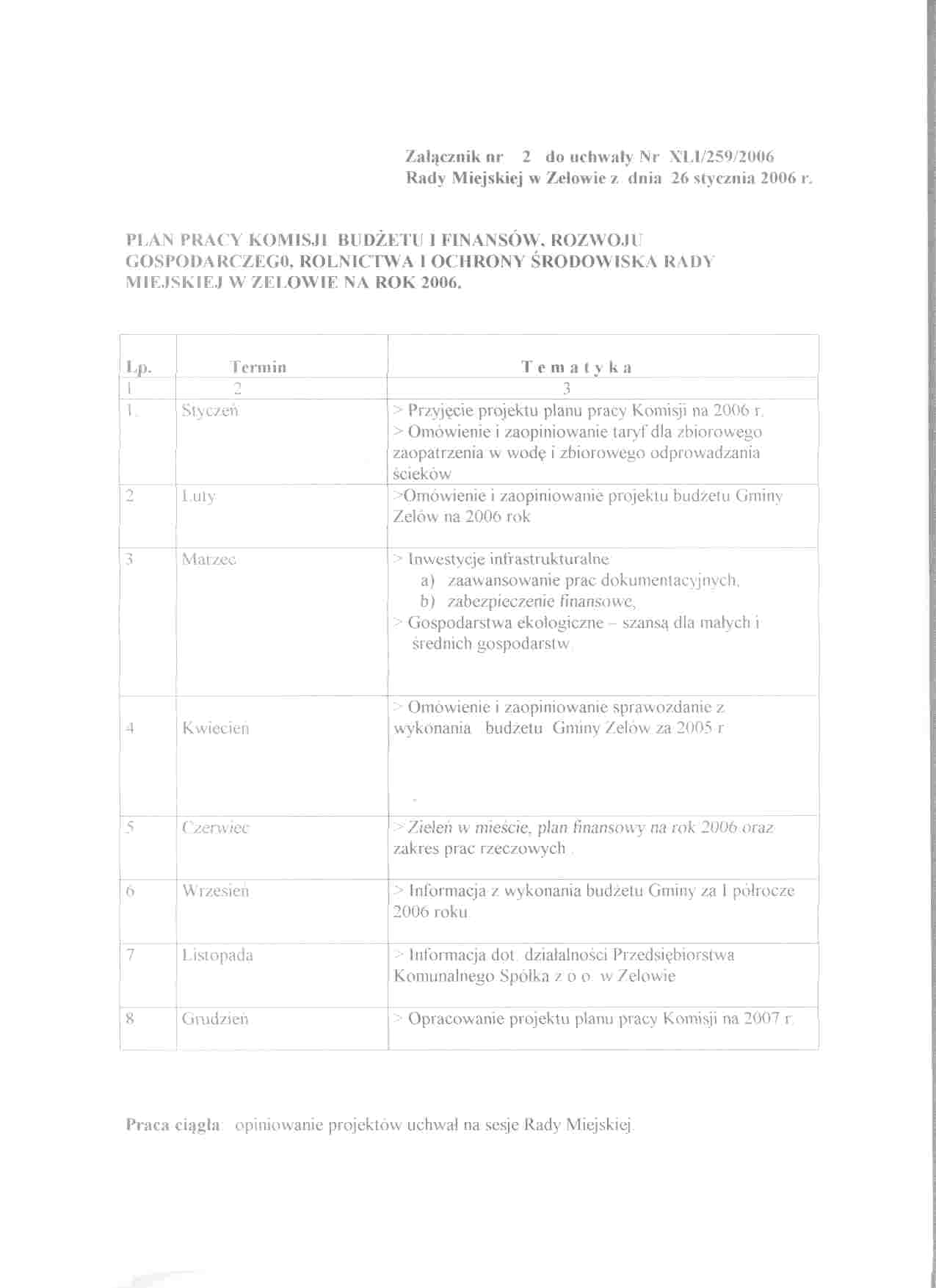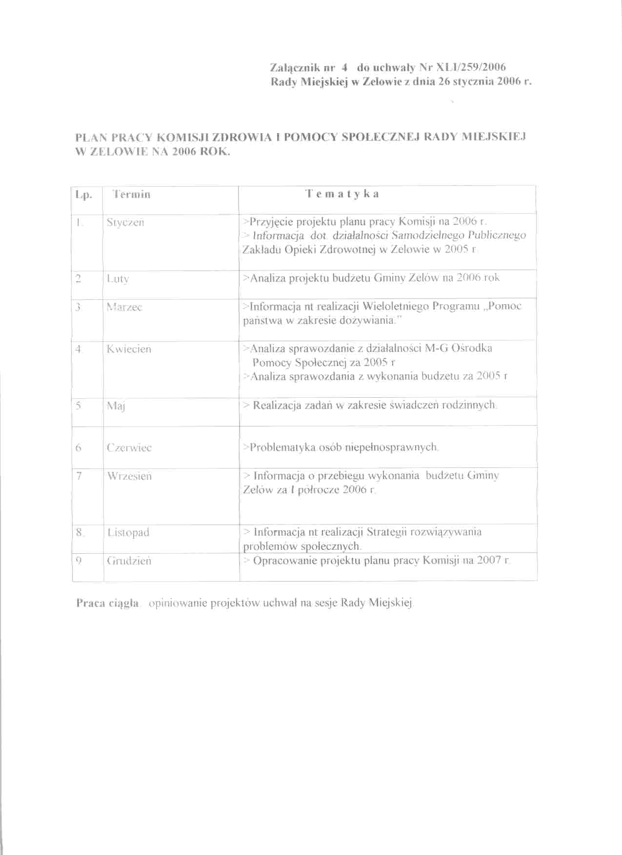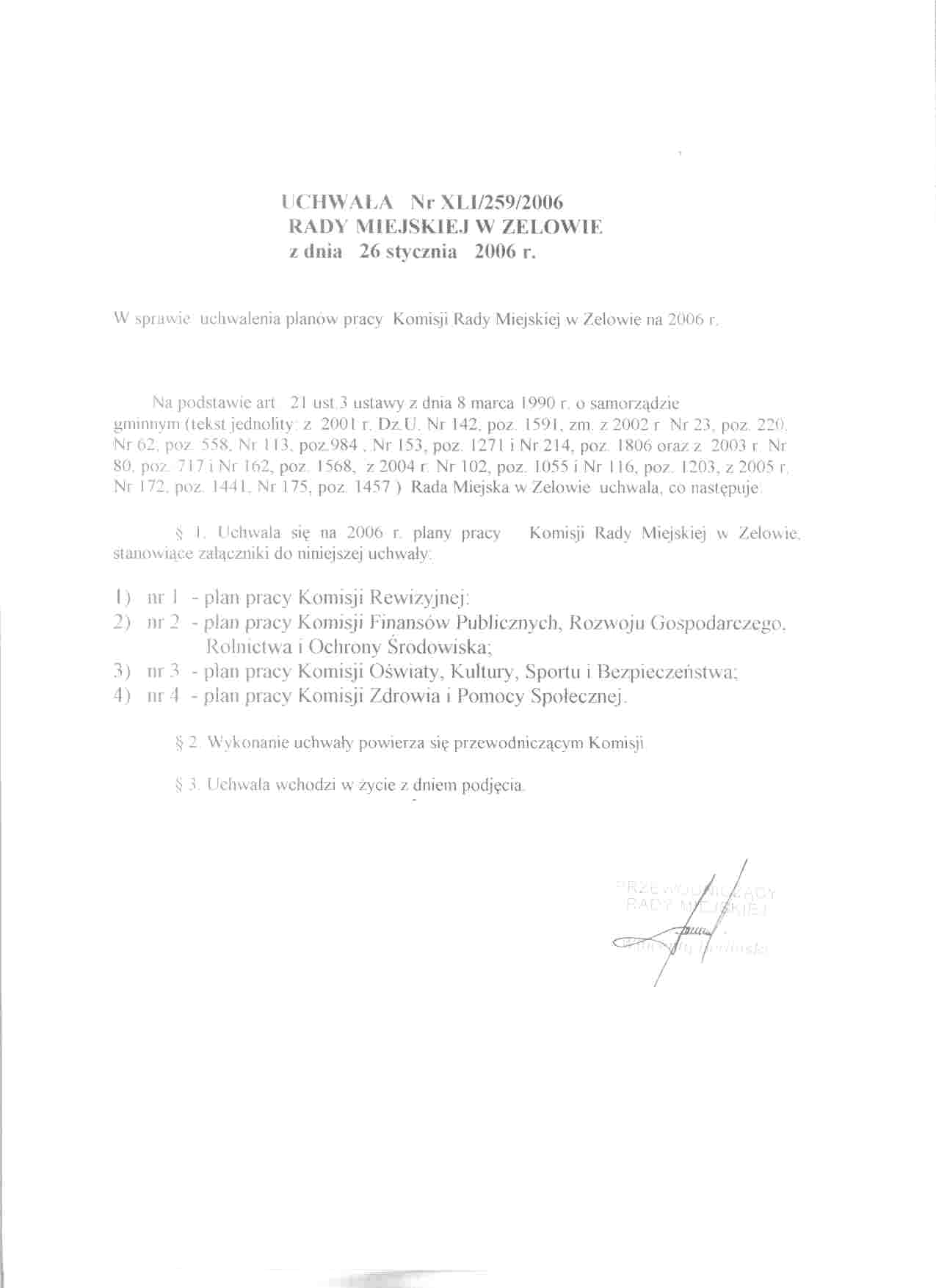 | Tytuł aktu prawnego - skrócony: | w sprawie uchwalenia planów pracy Komisji Rady Miejskiej w Zelowie na 2006 r. |