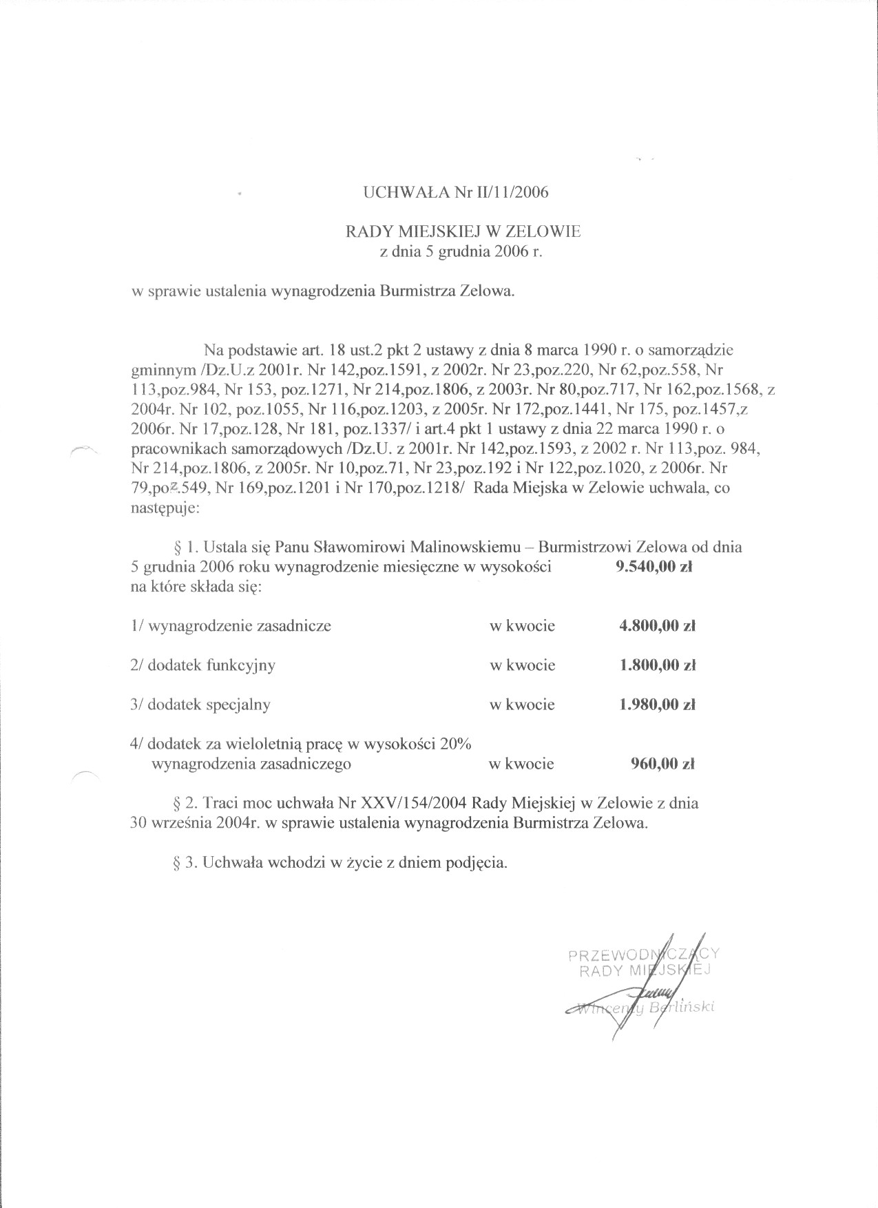| Tytuł aktu prawnego - skrócony: | Uchwała w sprawie ustalenia wynagrodzenia Burmistrza Zelowa |