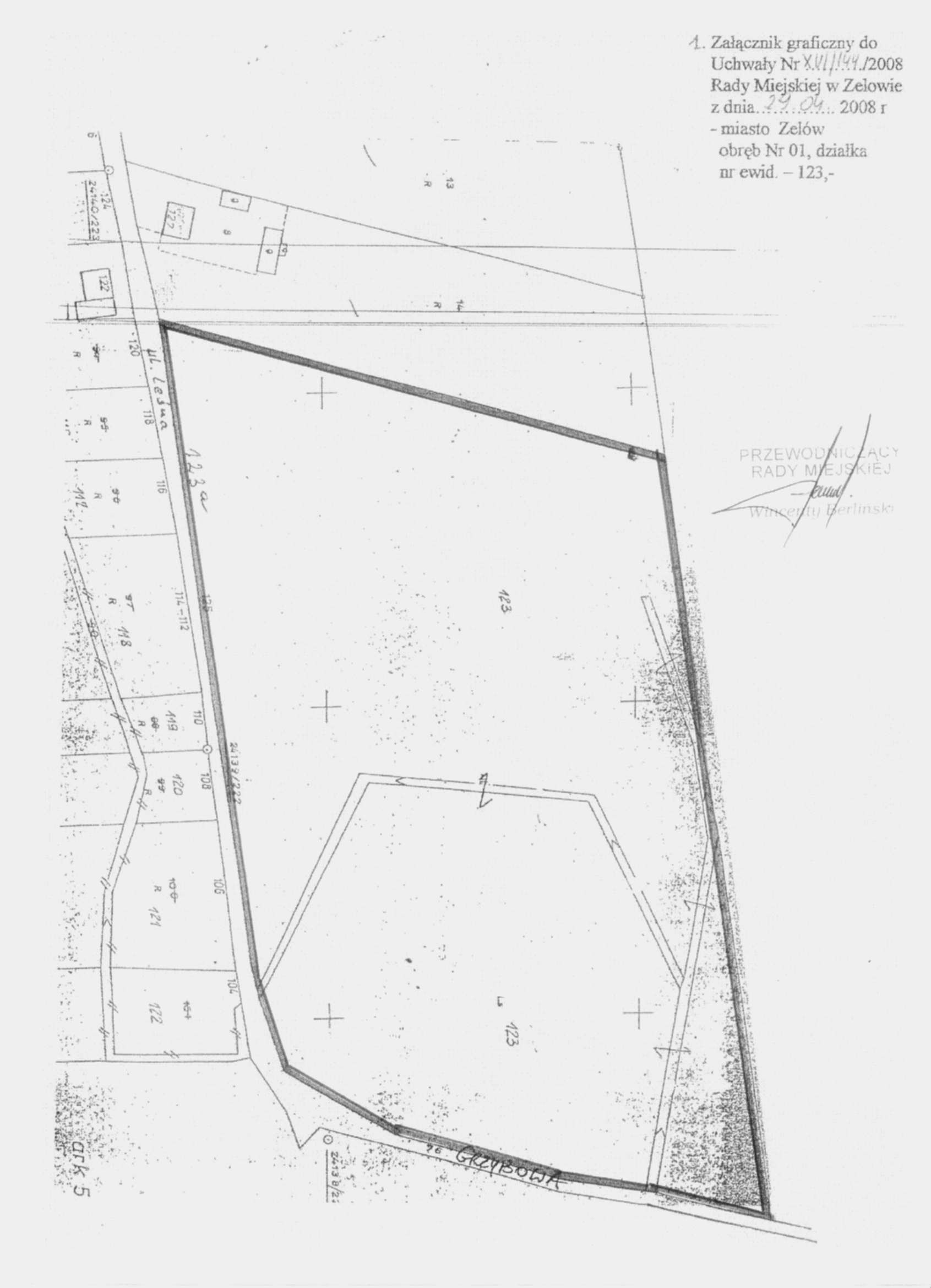 | Tytuł aktu prawnego - skrócony: | uchwała w sprawie przystąpienia do sporządzenia zmiany miejscowego planu zagospodarowania przestrzennego miasta Zelowa w obrębie Nr 01 dla działki nr ewid. - 123, z przeznaczeniem terenu pod działalność aktywności gospodarczej. |