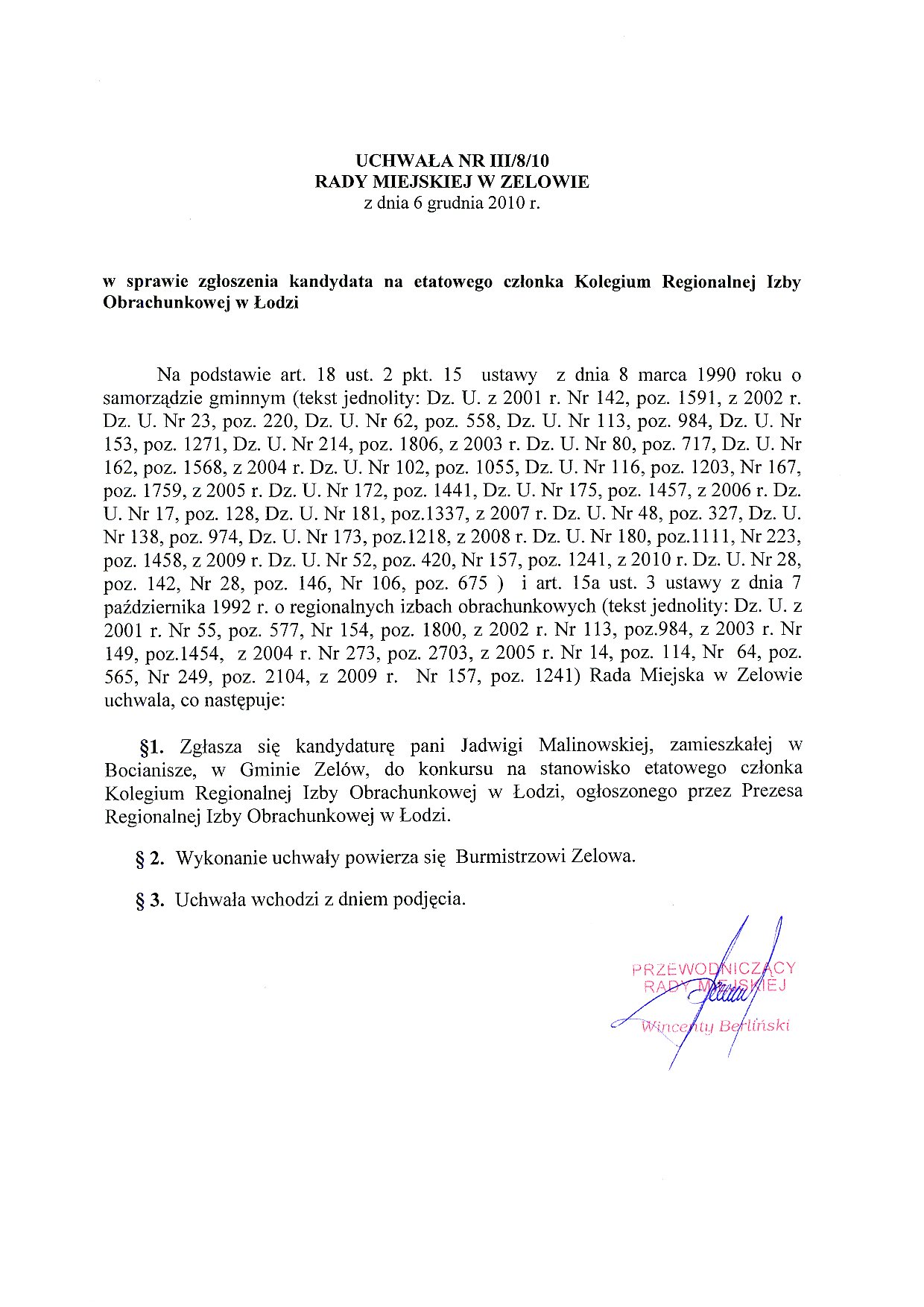 | Tytuł aktu prawnego - skrócony: | Uchwała w sprawie zgłoszenia kandydata na etatowego członka Kolegium Regionalnej Izby Obrachunkowej w Łodzi |