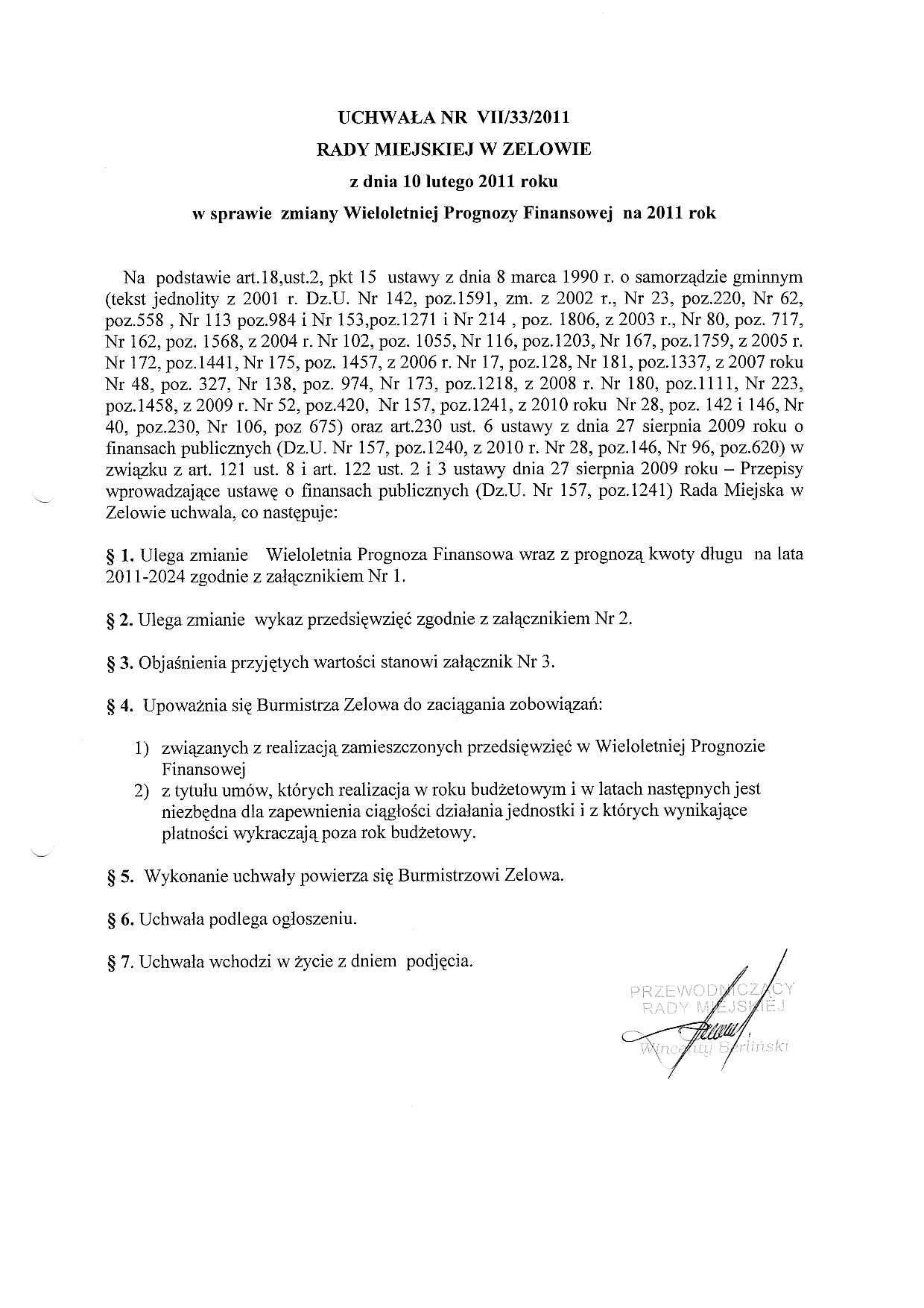 | Tytuł aktu prawnego - skrócony: | Uchwała w sprawie zmiany Wieloletniej Prognozy Finansowej na 2011 rok |