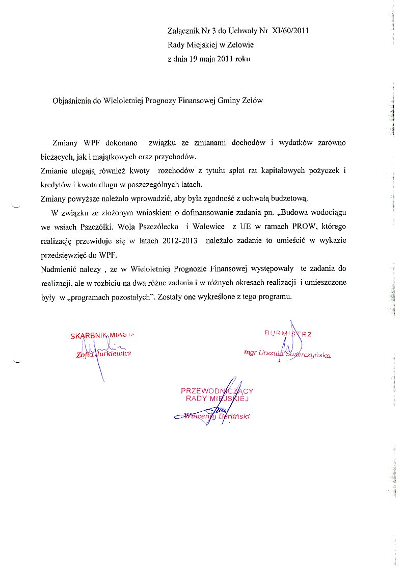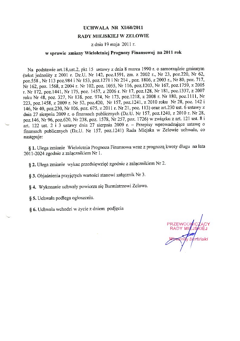 | Tytuł aktu prawnego - skrócony: | w sprawie zmiany Wieloletniej Prognozy Finansowej na 2011 rok. |