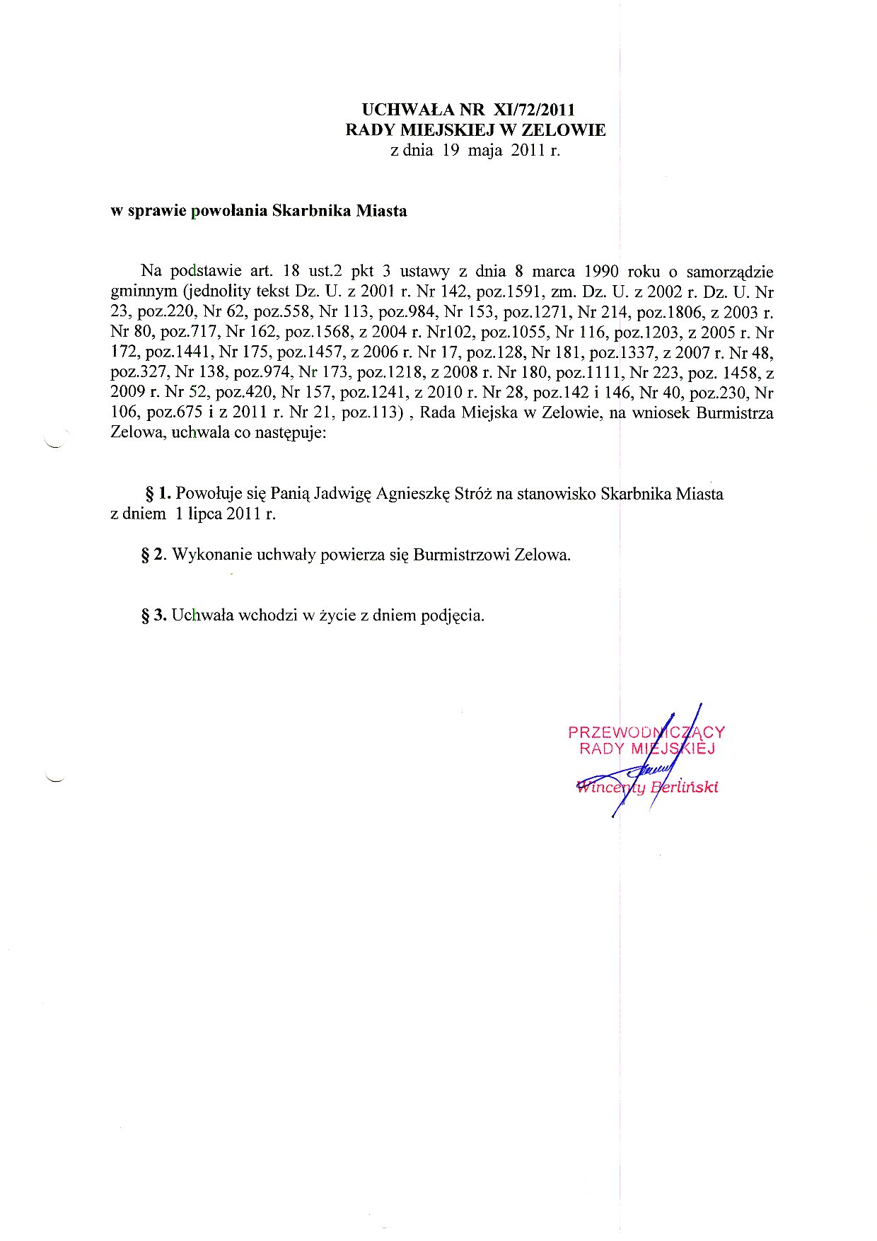 | Tytuł aktu prawnego - skrócony: | w sprawie powołania Skarbnika Miasta |