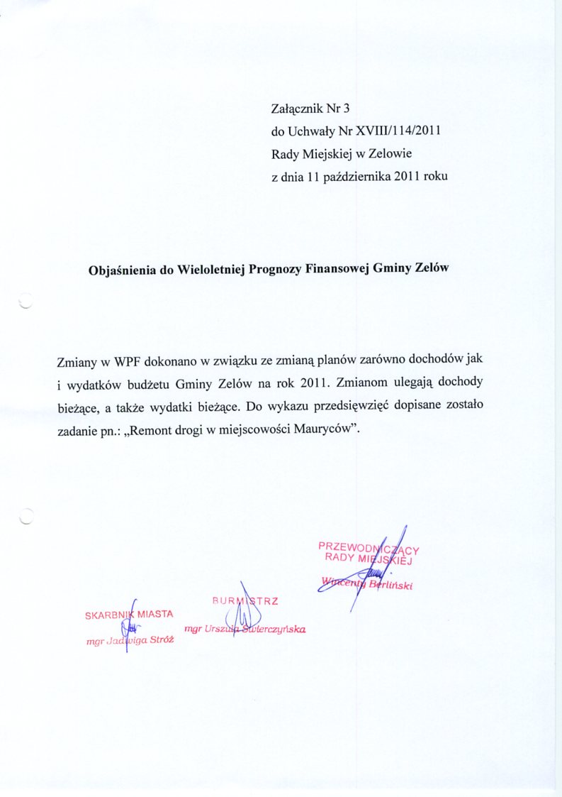 | Tytuł aktu prawnego - skrócony: | w sprawie zmiany w Wieloletniej Prognozie Finansowej na 2011 rok |