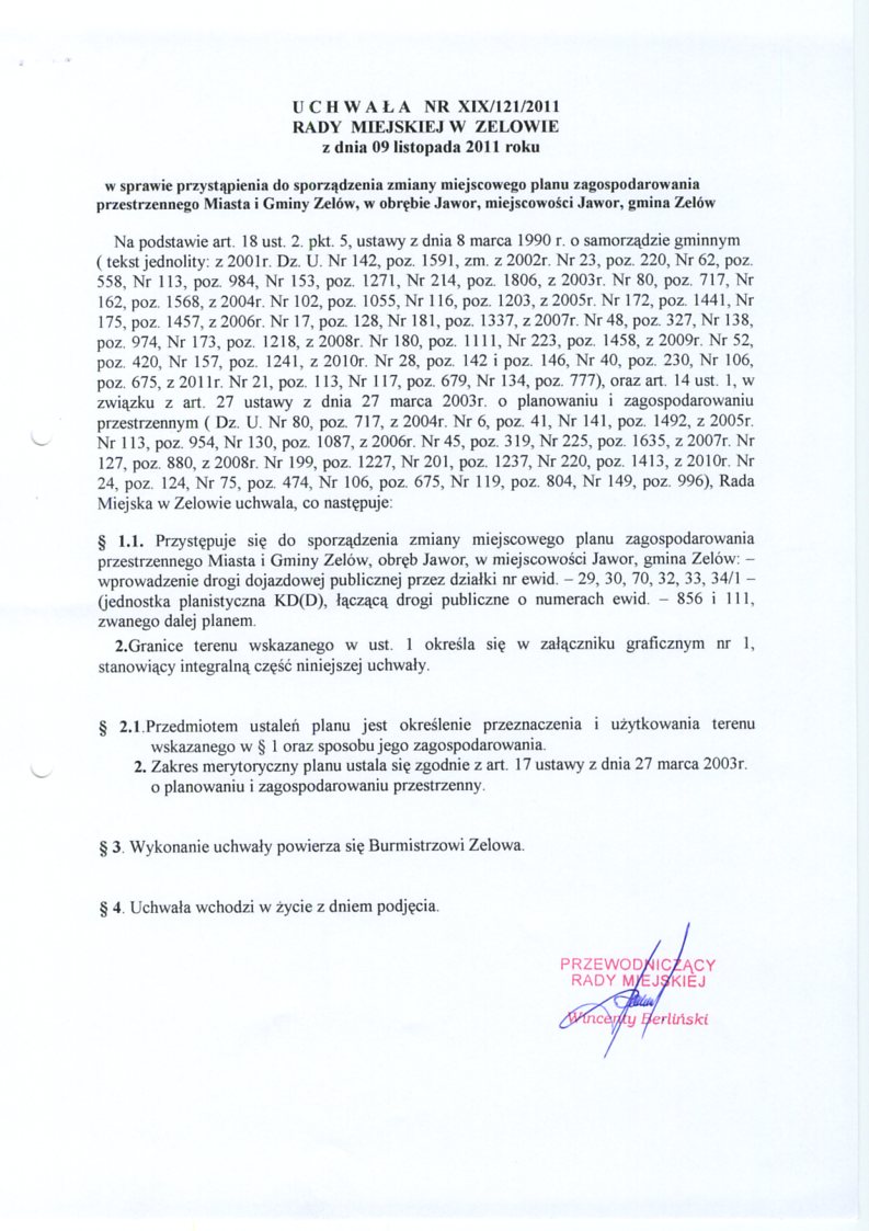 | Tytuł aktu prawnego - skrócony: | w sprawie przystąpienia do sporządzenia zmiany miejscowego planu zagospodarowania przestrzennego Miasta i Gminy Zelów, w obrębie Jawor, miejscowości Jawor, gmina Zelów. |