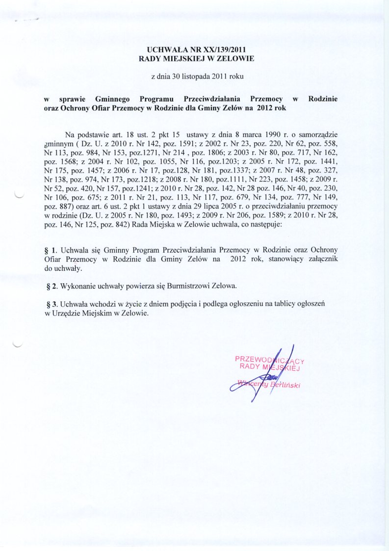 | Tytuł aktu prawnego - skrócony: | w sprawie Gminnego Programu Przeciwdziałania Przemocy w Rodzinie oraz Ochrony Ofiar Przemocy w Rodzinie dla Gminy Zelów na 2012 rok |