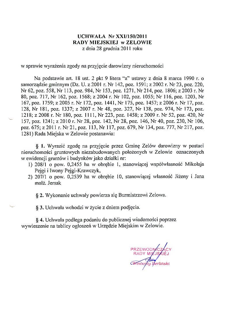 | Tytuł aktu prawnego - skrócony: | w sprawie wyrażenia zgody na przyjęcie darowizny nieruchomości od Ochotniczej Straży Pożarnej w Pożdżenicach |