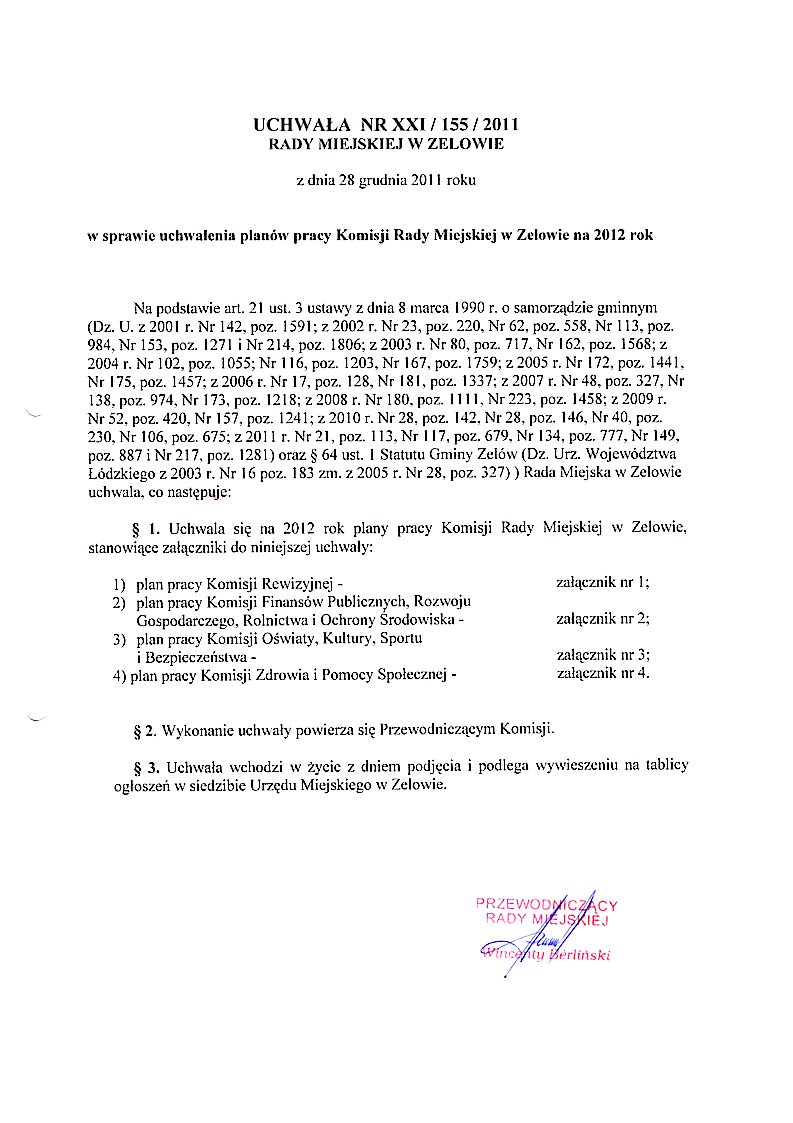 | Tytuł aktu prawnego - skrócony: | w sprawie uchwalenia planów pracy Komisji Rady Miejskiej w Zelowie na 2012 rok |
