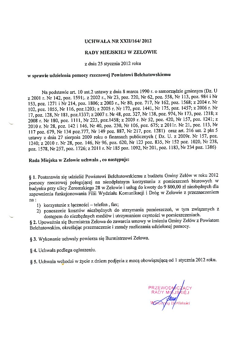 | Tytuł aktu prawnego - skrócony: | w sprawie udzielenia pomocy rzeczowej Powiatowi Bełchatowskiemu. |