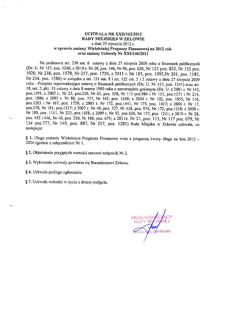 | Tytuł aktu prawnego - skrócony: | w sprawie zmiany Wieloletniej Prognozy Finansowej na 2012 rok oraz zmiany Uchwały Nr XXI/146/2011 |