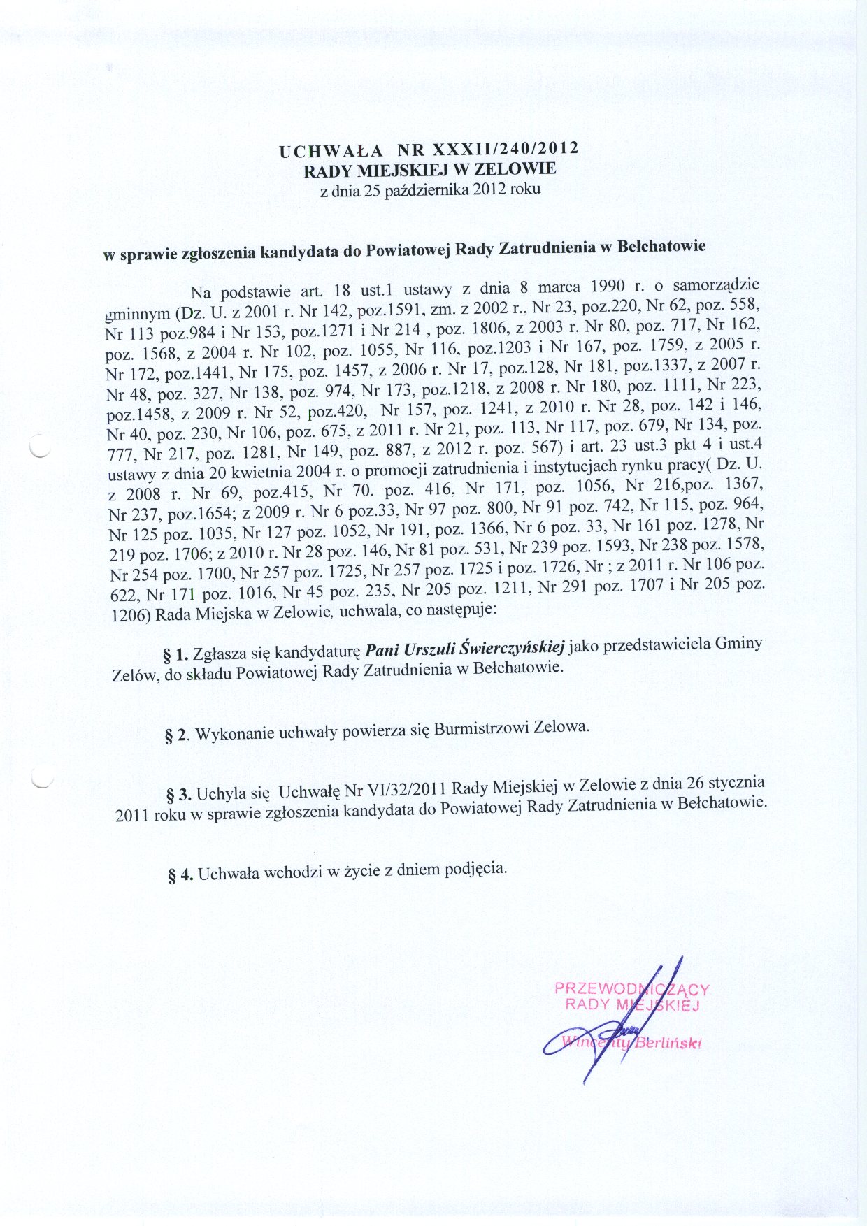 | Tytuł aktu prawnego - skrócony: | w sprawie zgłoszenia kandydata do Powiatowej Rady Zatrudnienia w Bełchatowie. |