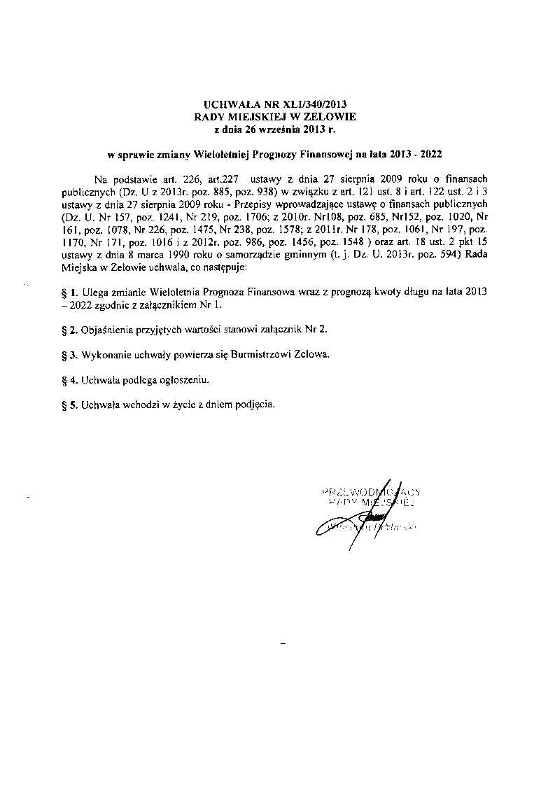 | Tytuł aktu prawnego - skrócony: | w sprawie zmiany Wieloletniej Prognozy Finansowej na lata 2013 - 2022. |