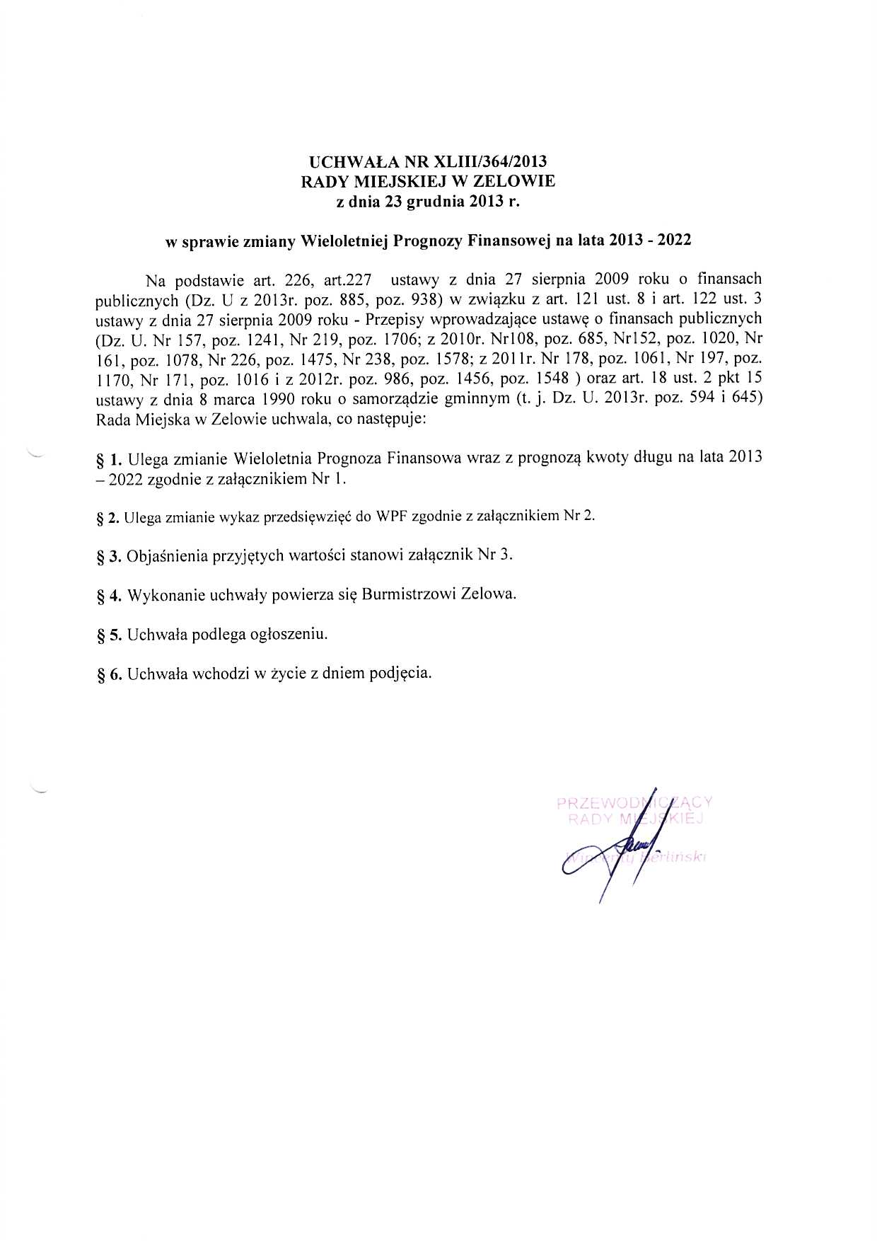 | Tytuł aktu prawnego - skrócony: | w sprawie zmiany Wieloletniej Prognozy Finansowej na lata 2013 - 2022. |
