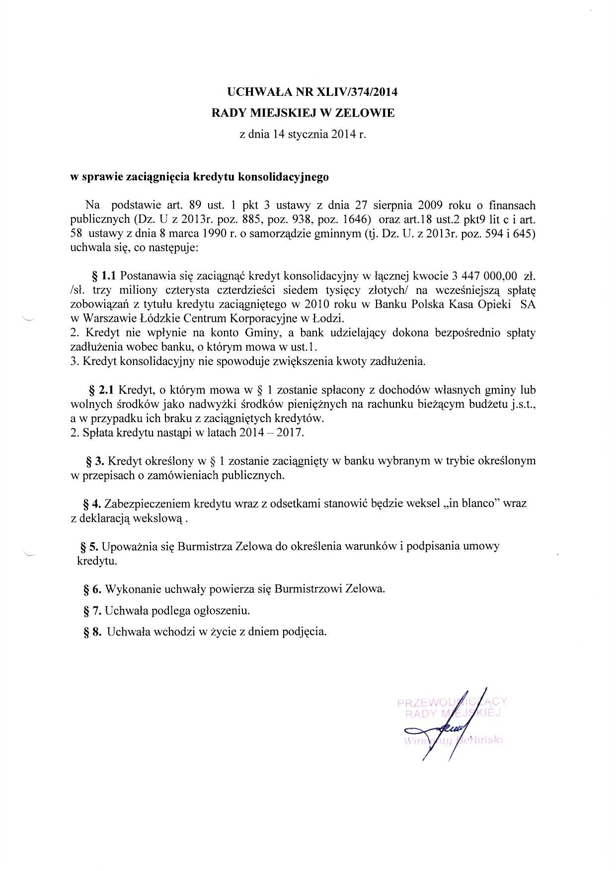 | Tytuł aktu prawnego - skrócony: | w sprawie zaciągnięcia kredytu konsolidacyjnego |