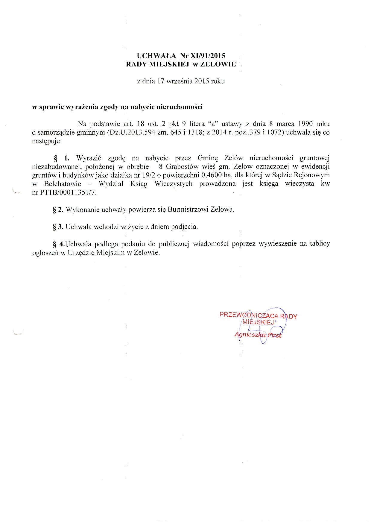 | Tytuł aktu prawnego - skrócony: | w sprawie wyrażenia zgody na nabycie nieruchomości |