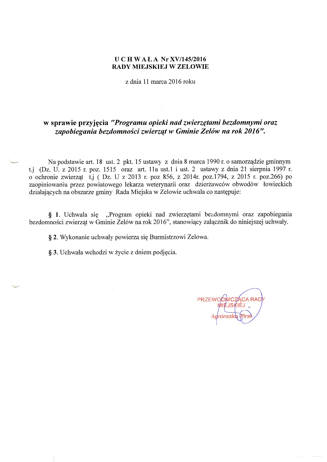 Renata Lodczyk) - Dodanie załącznika [uchwala_w_sprawie_programu_ochrony_zwierzat_2016.doc] do dokumentu. (Dokument opublikowany)
