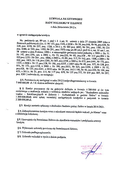 | Tytuł aktu prawnego - skrócony: | w sprawie zaciągnięcia kredytu. |